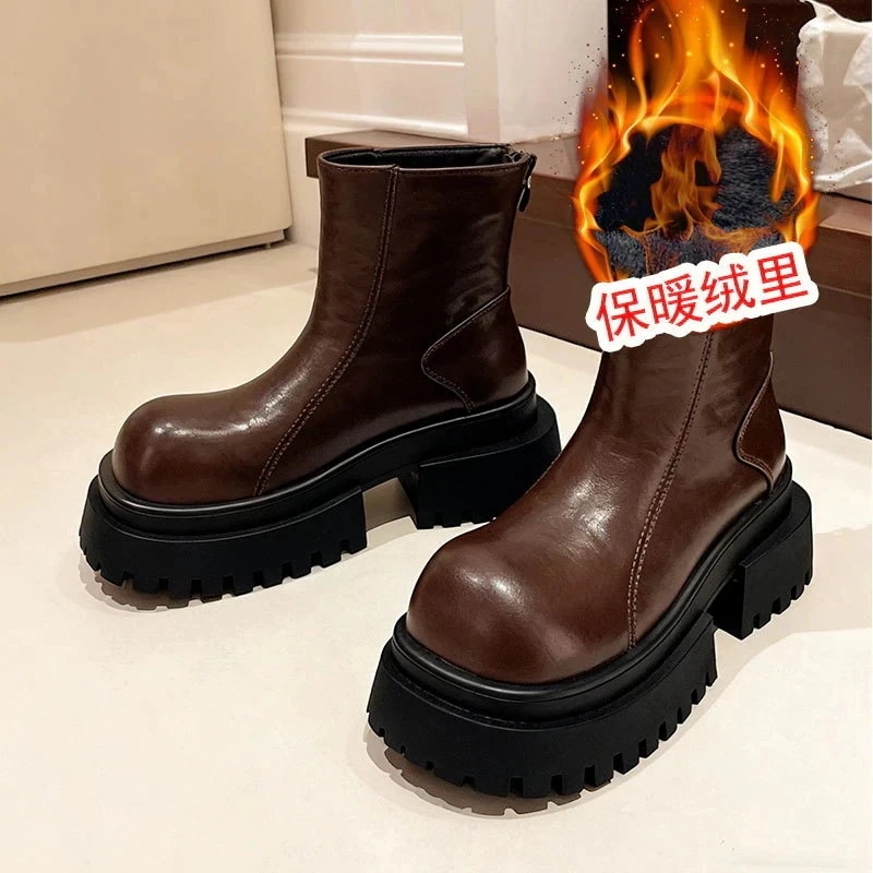 女性2026年冬新作ビッグヘッド 裏地付き厚底ショート丈チェルシーブーツ ショート丈コットンブーツ