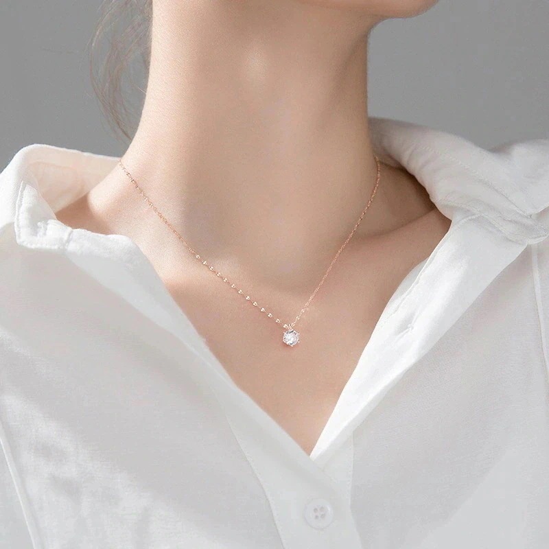 韓国ファッション 短めが可愛いチョーカーネックレス s925銀 韓国清新一粒CZダイヤモンド女性用