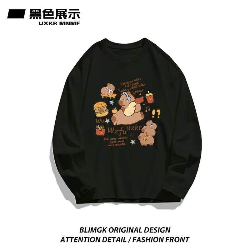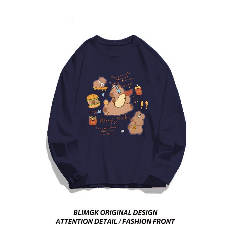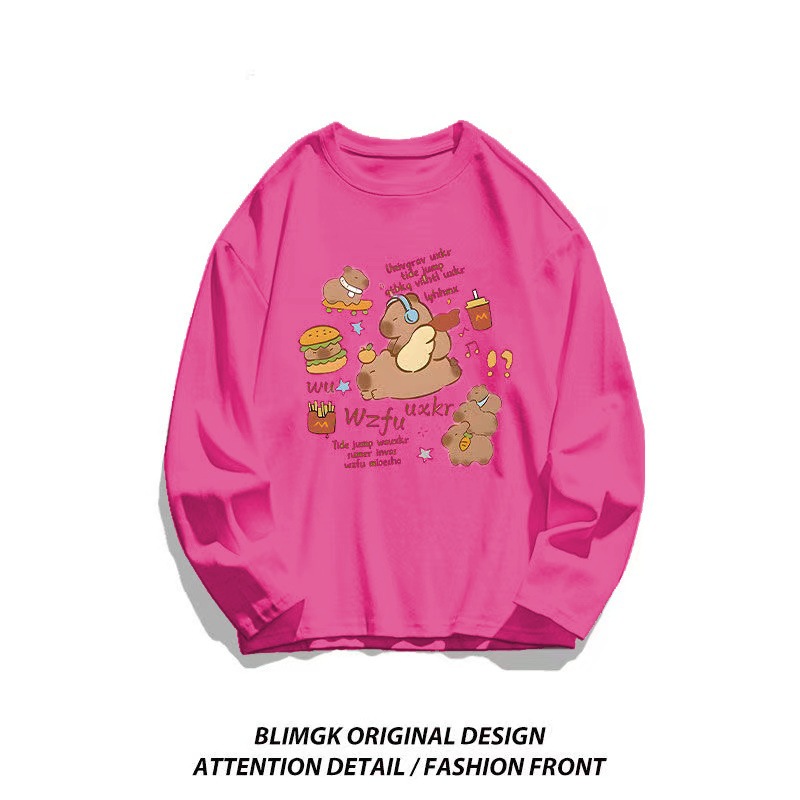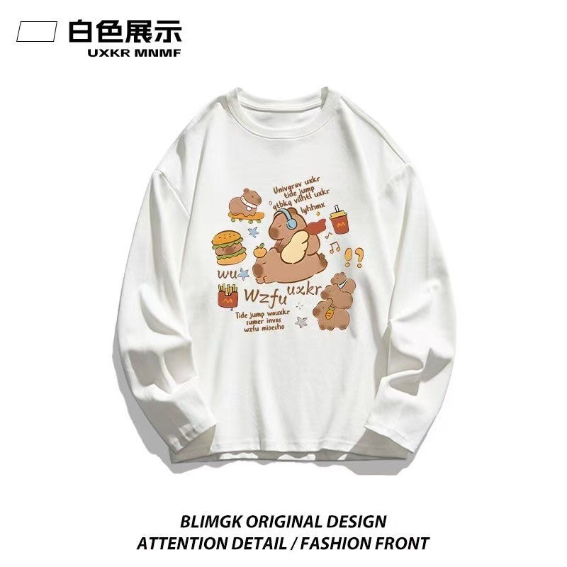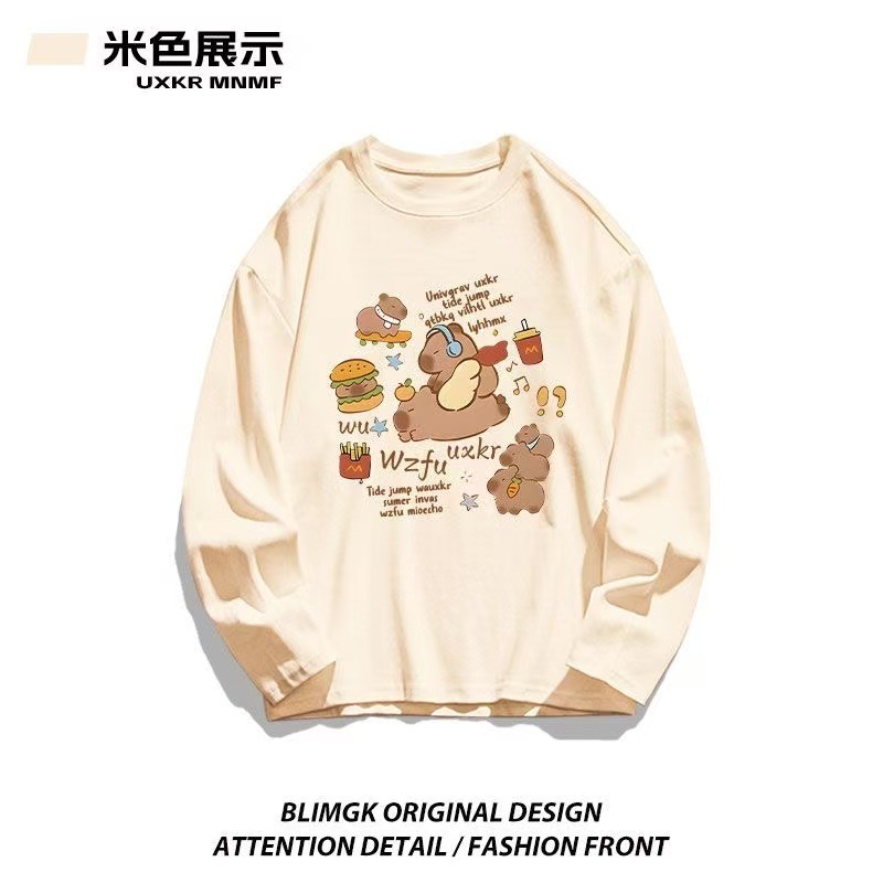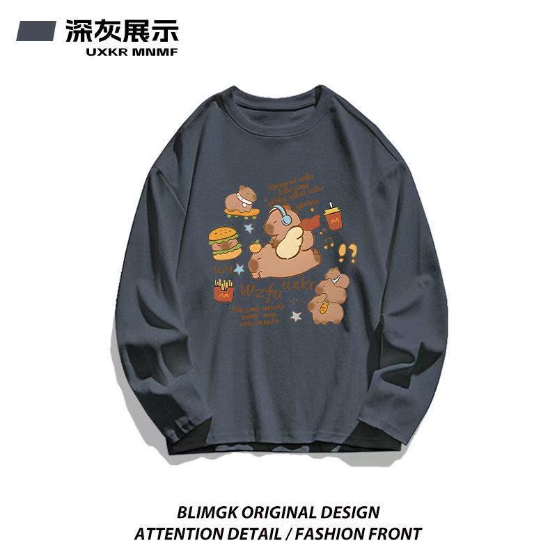 カピバラプリント 長袖 T シャツ 薄手 クルーネック