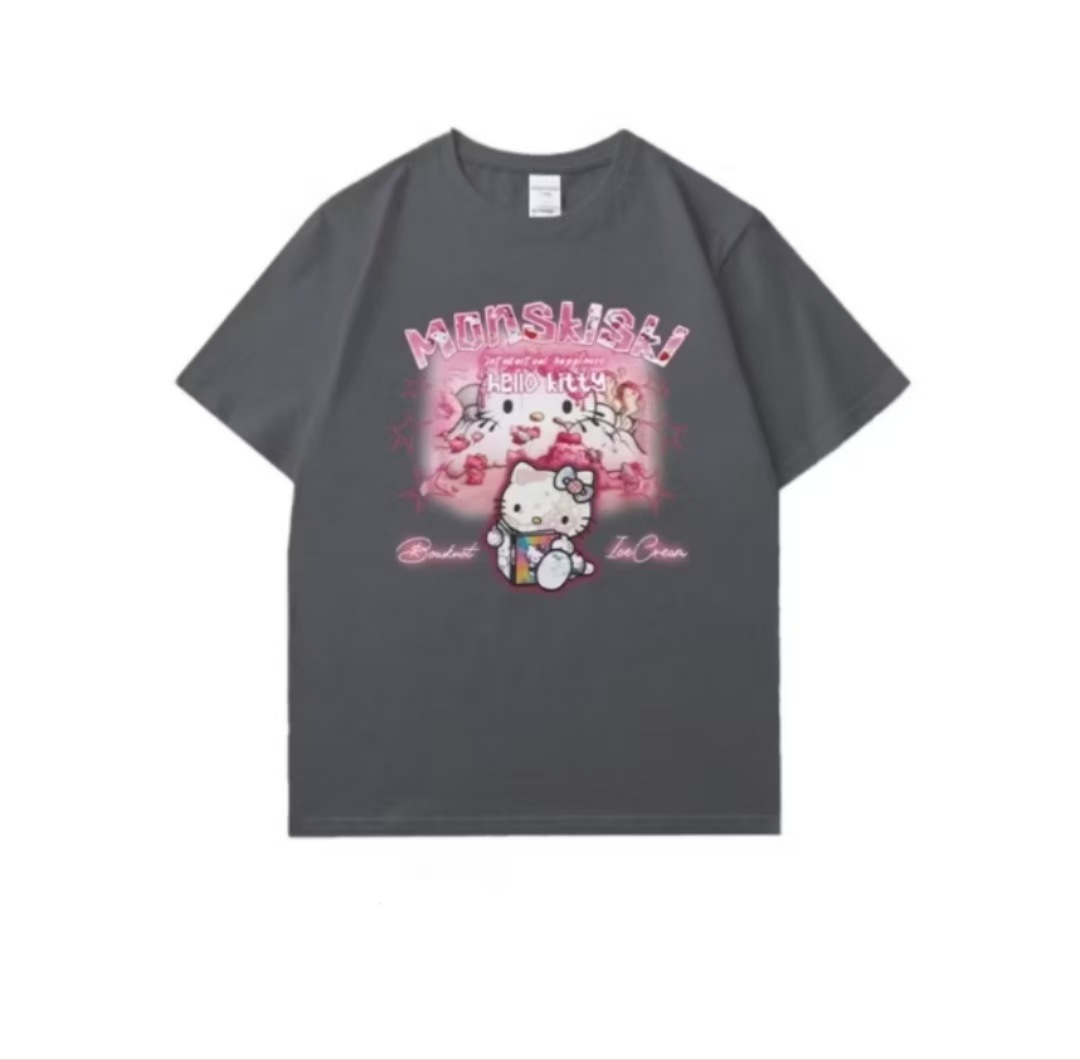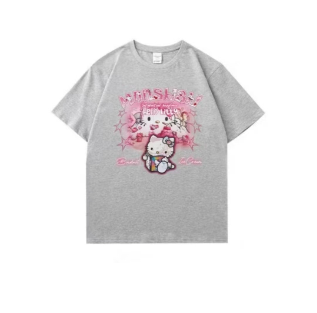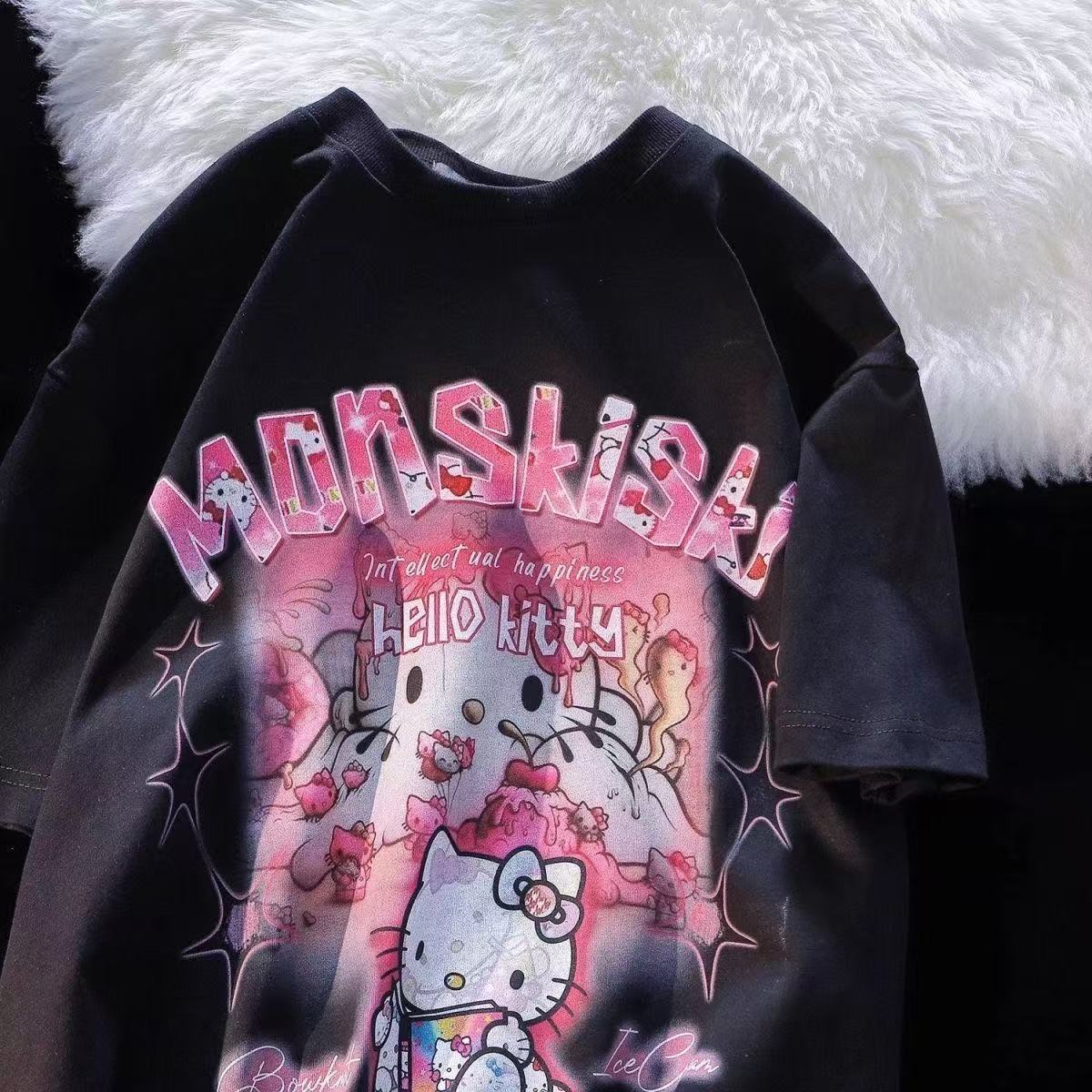 日系 キャットプリント T シャツ ユニセックス ストリート