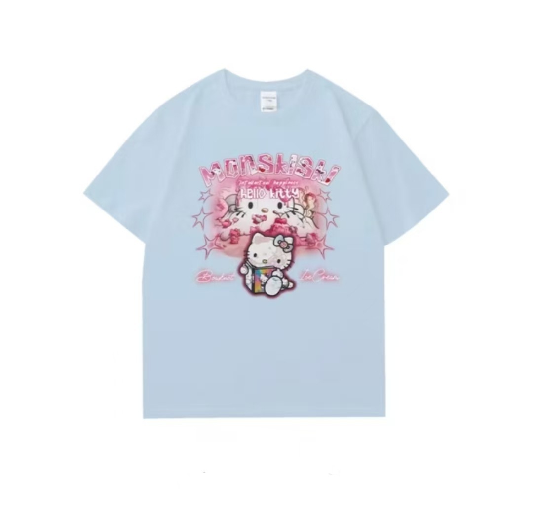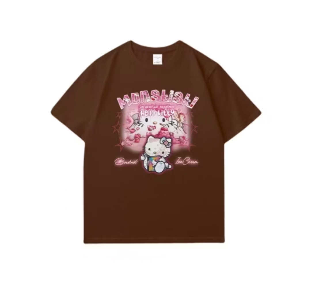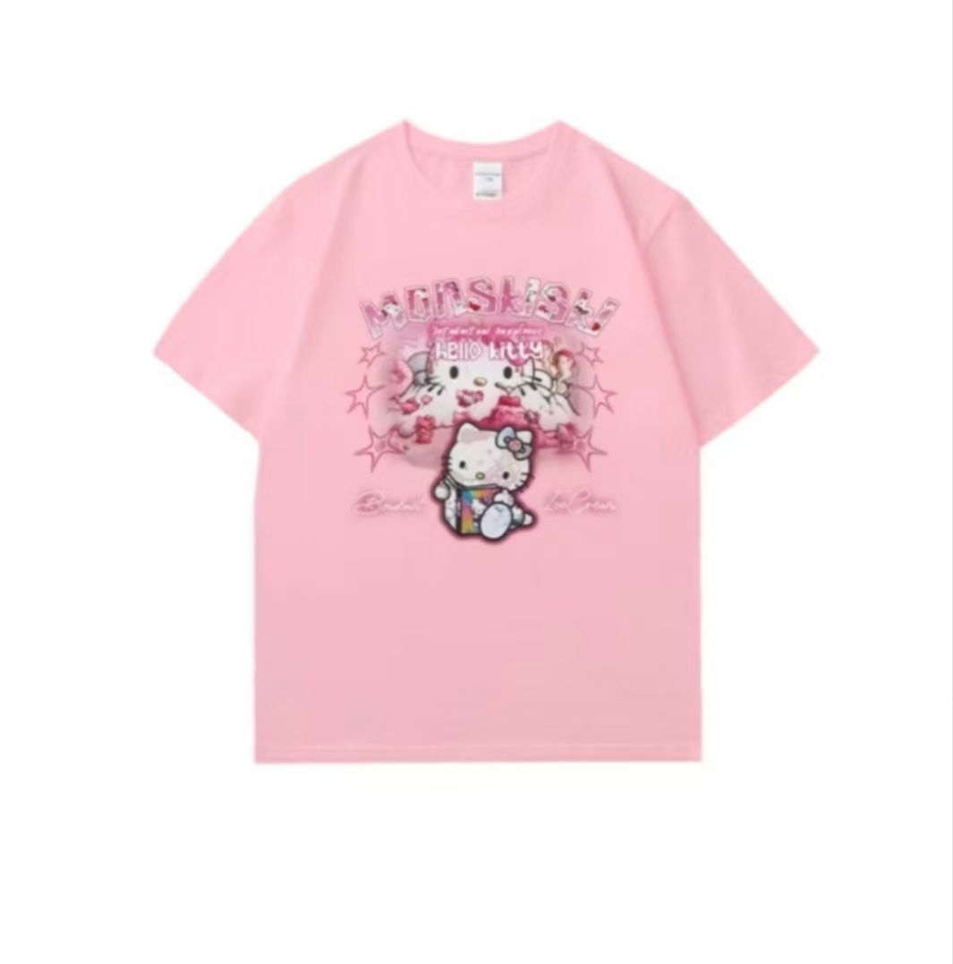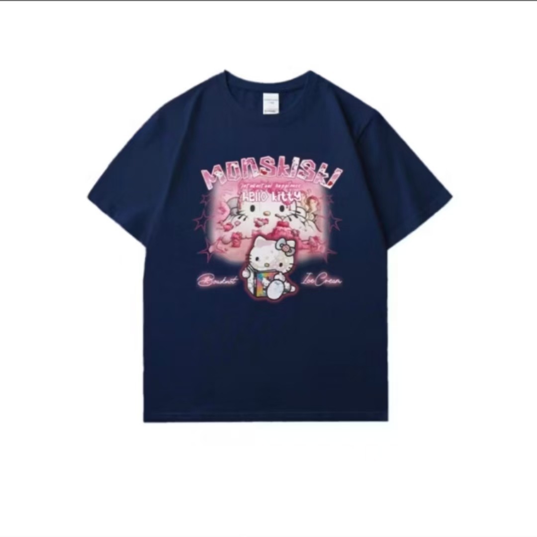 日系 キャットプリント T シャツ ユニセックス ストリート