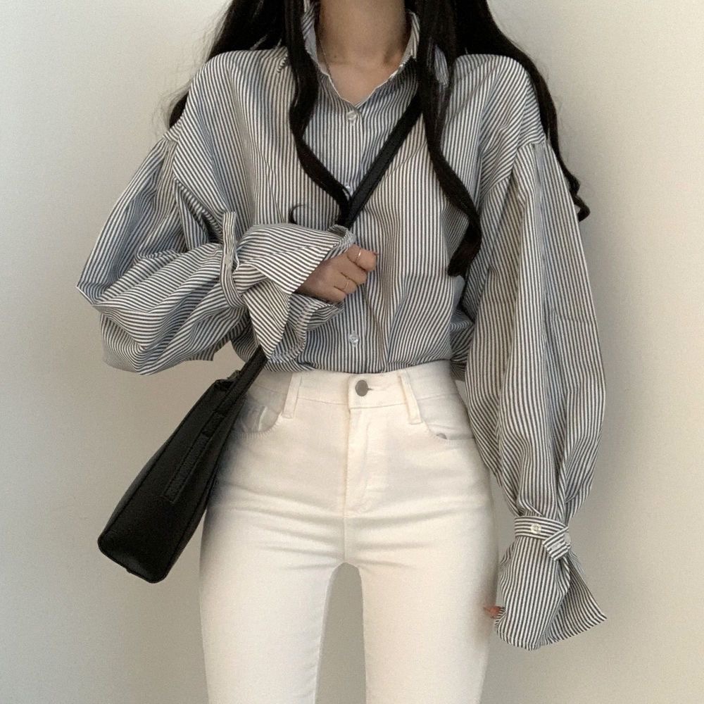 2026春新作 ストライプ シフォンブラウス レディース 韓国ファッション 大きいサイズ 着痩せ 長袖トップス 通勤気質 百掛けシアーシャツ 気質 夏UVカットシャツ/ Tシャツ