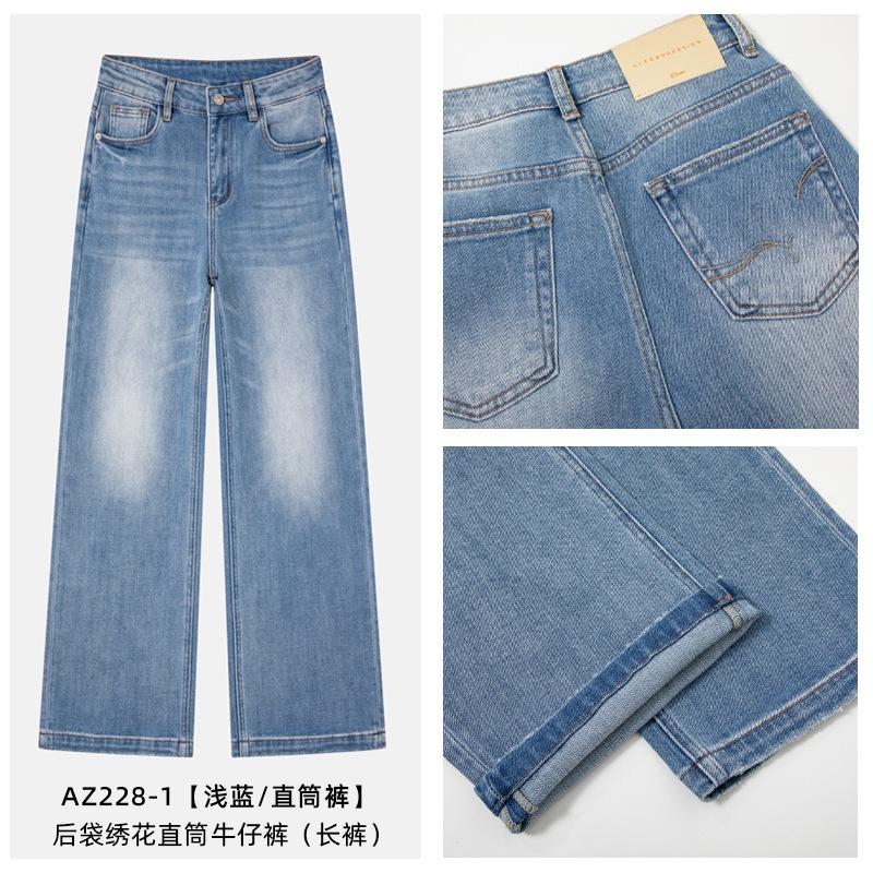 バックポケット 刺繍 ストレートジーンズ ロングパンツ