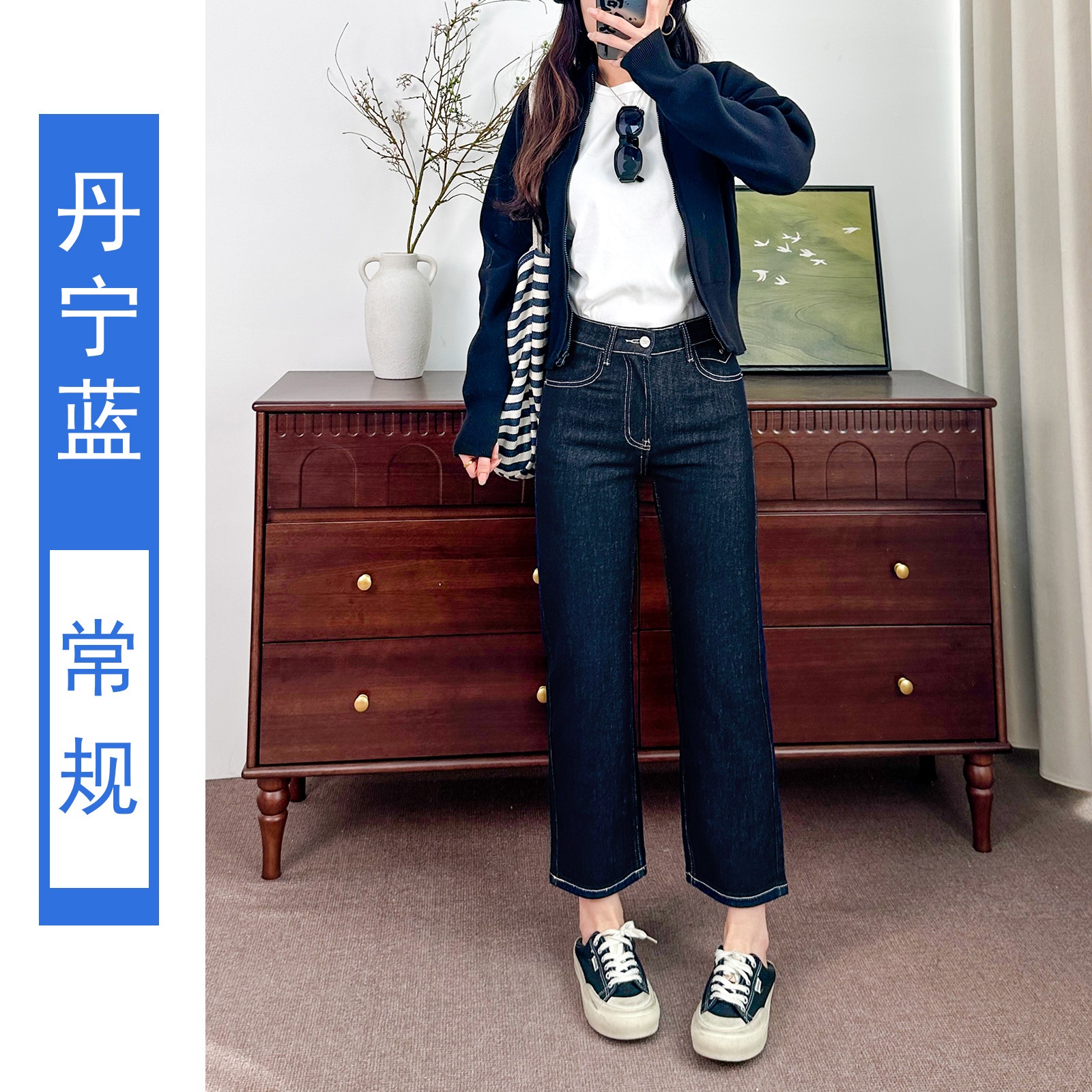 佳偉 デニムブルー 高ウエスト ストレート テーパードパンツ レディース ヒップアップ シーガルライン 微弾性 9分丈