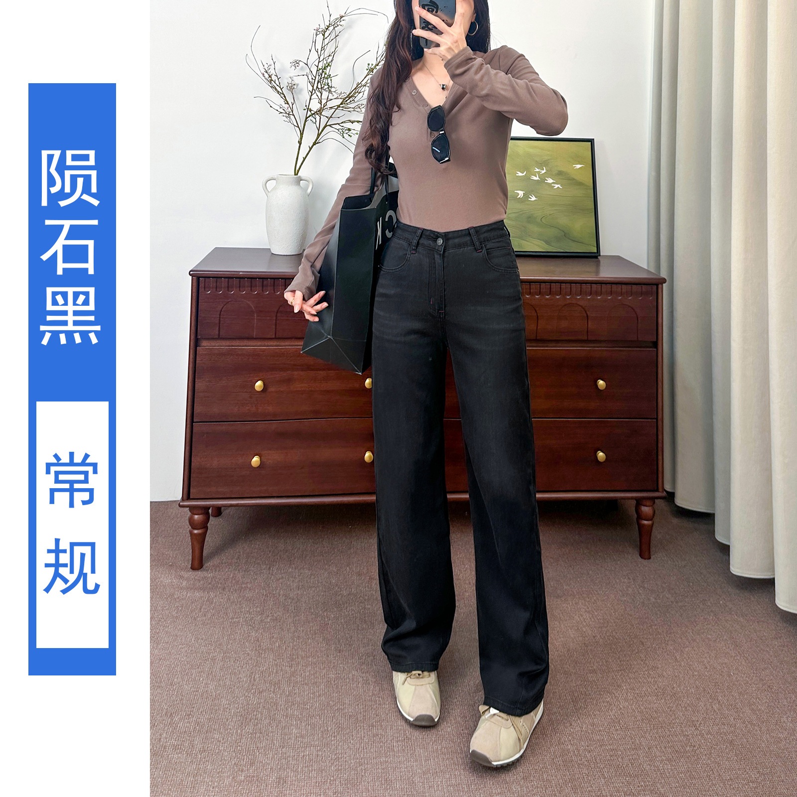 ストレッチ ワイドデニム 高ウエスト アメリカンテイスト カジュアル ワイドロングパンツ テンセル リヨセル 素材 ビッグブラック