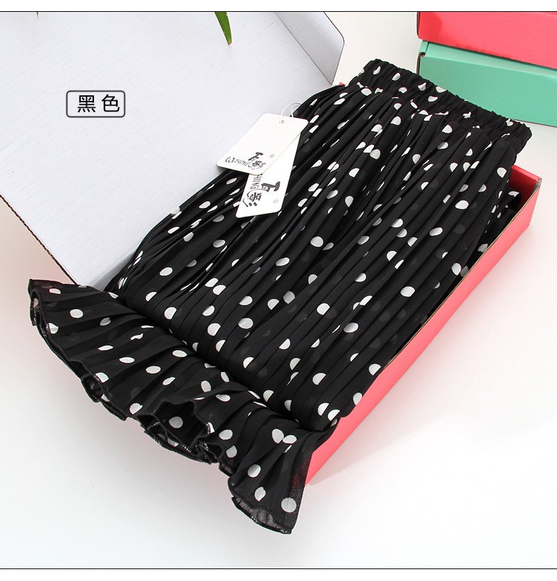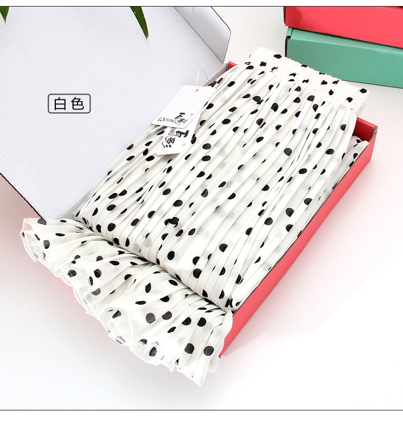 小花柄 水玉 シフォン プリーツスカート ミディ丈 水玉 ロング丈