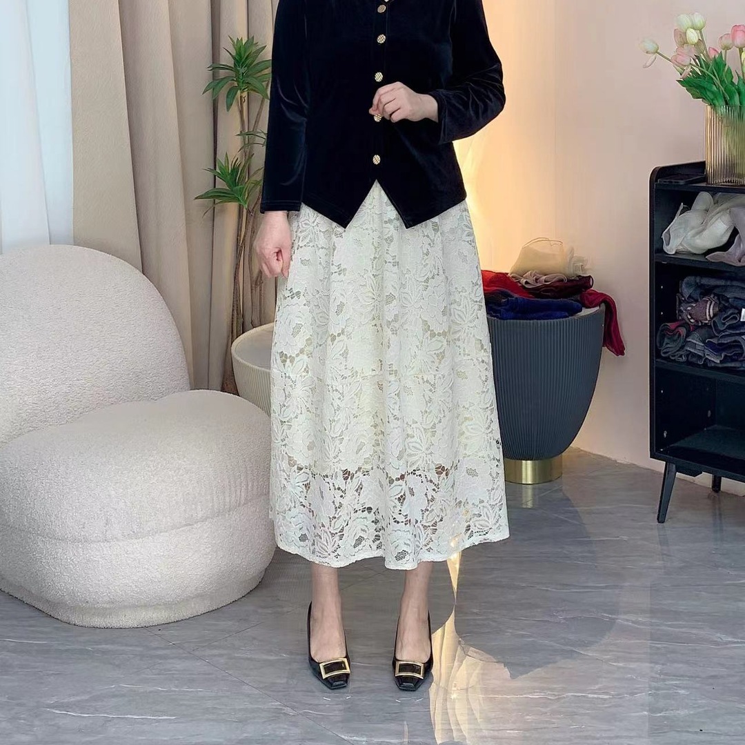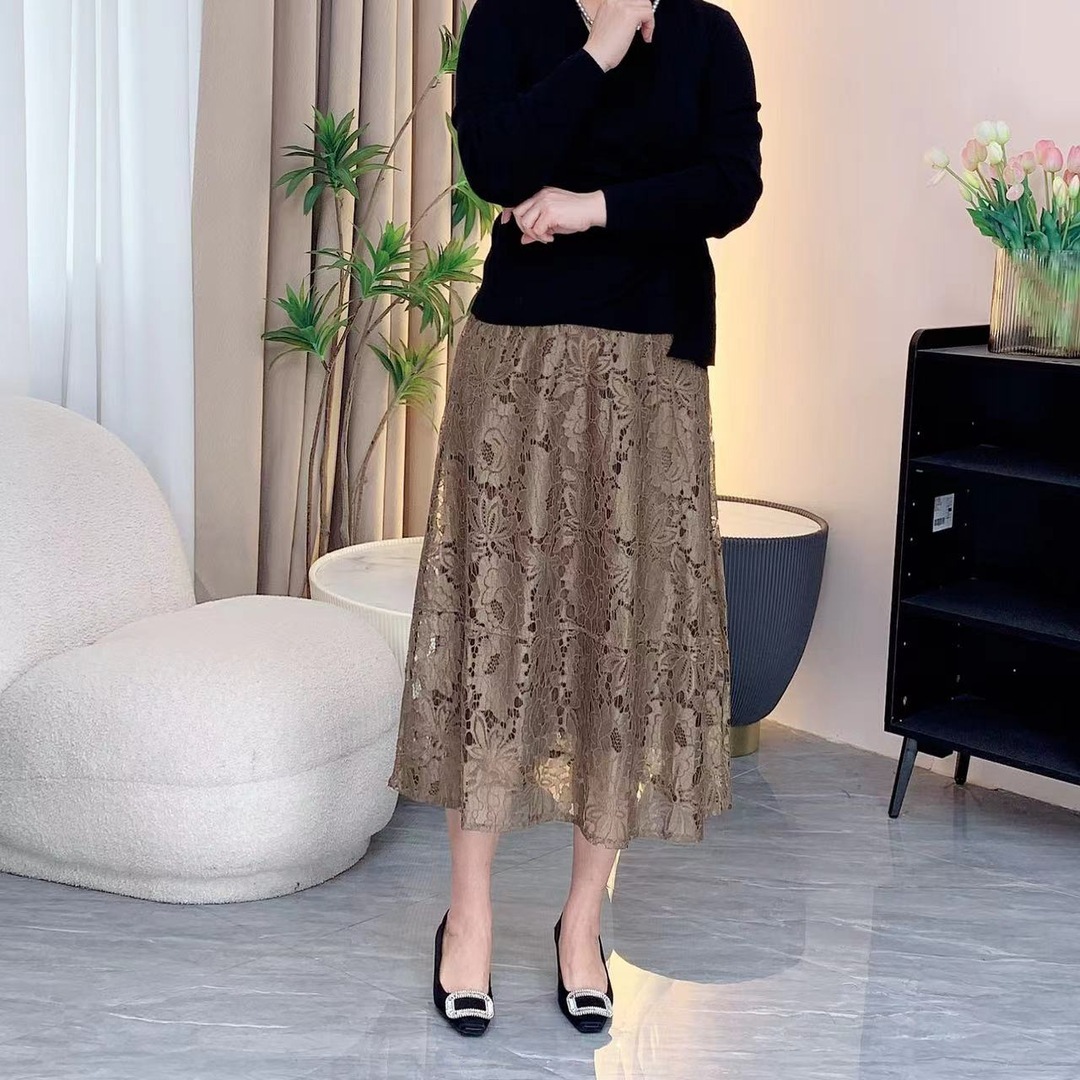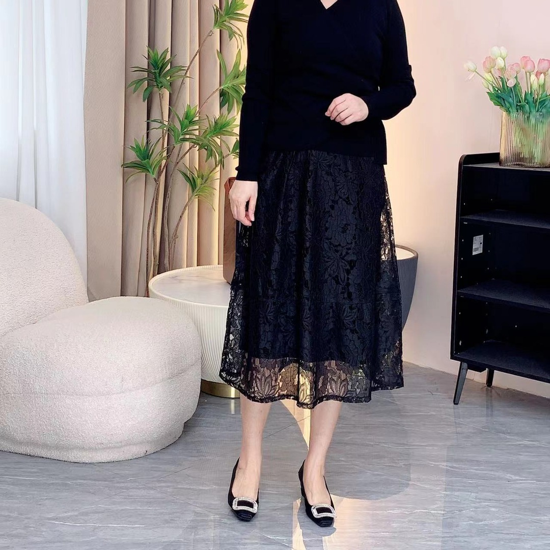 重め 大きいサイズ レーススカート レディース ゆったり 上品 細見え ママ向け 上品 レディースウェア