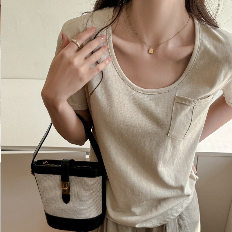 オーバーサイズT ストレートショルダー半袖Tシャツ レディース 夏用インナー・ベーシックカラートップス