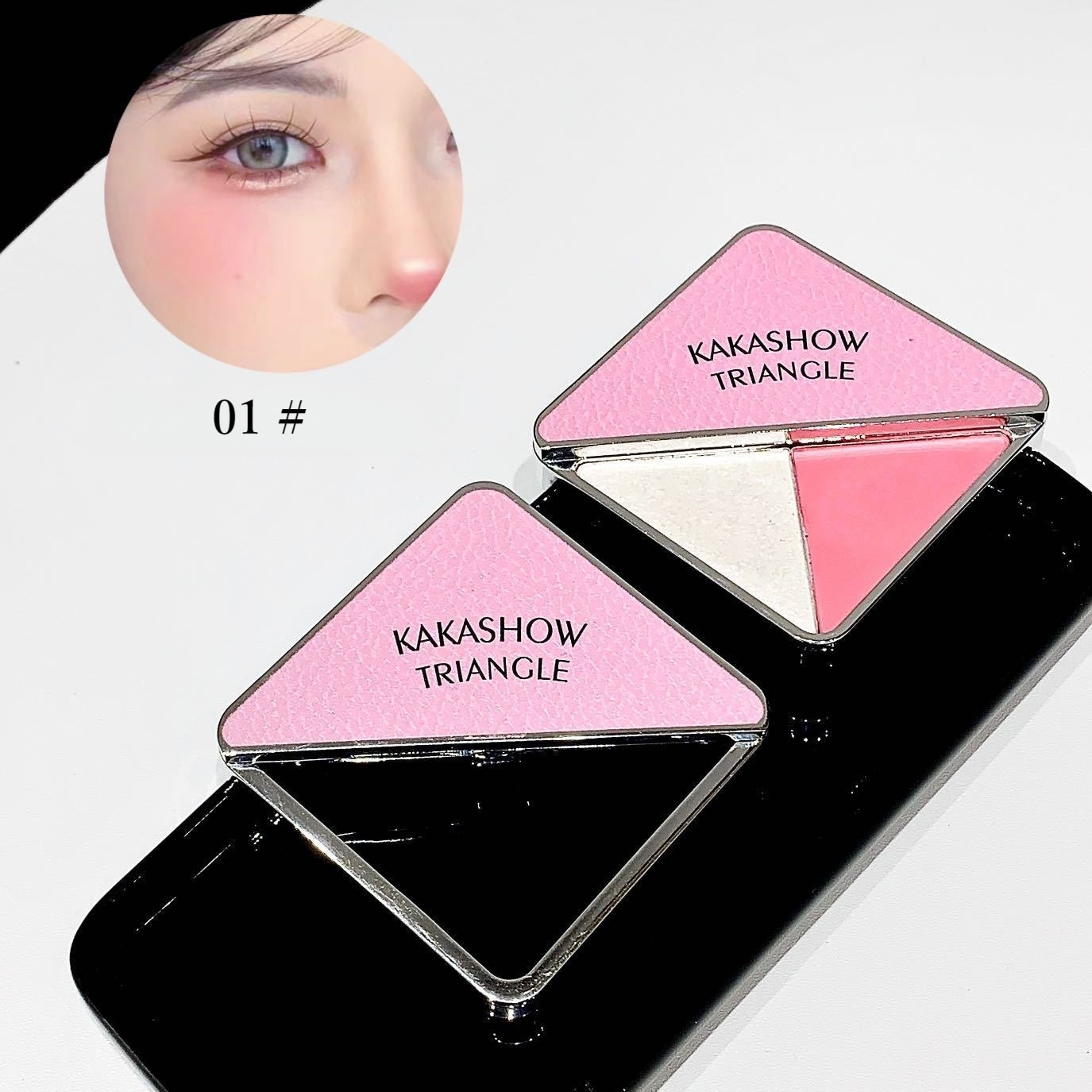 KAKASHOWKAKASHOW【新しいデザイン】2色 三角チーク ハイライト 80度回転可能 ナチュラル マット パステルブラッシャー 膨張色 ins風 柔らかくて美しい 自然 モチモチ ハイライター コスメ...