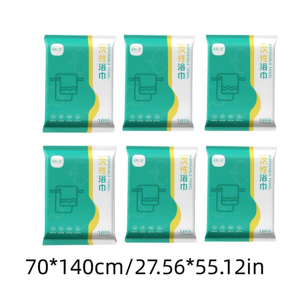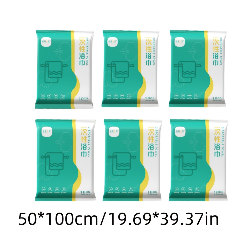 携帯用使い捨てバスタオル 6枚パック - 個別包装 厚手 旅行・ジム・キャンプに肌に優しいソフトタオル 強力吸水シート付き 衛生的 自宅・オフィス・休暇用