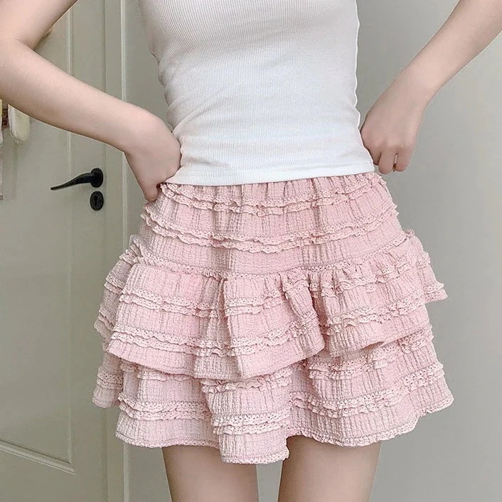 春 夏 レース裾 無地 黒 白 プリーツ ミニスカート 大サイズ レディース 春 コーデ ドレス シンプル 韓国 ファッション チュールスカート ストッキング