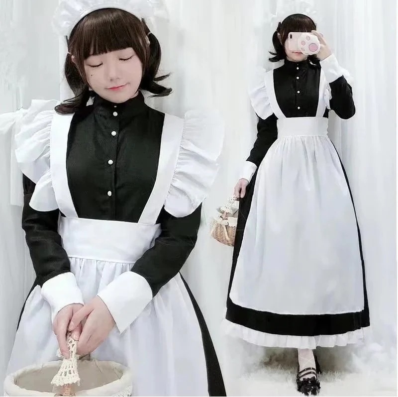 メイド服 メイドの大判ロングスカートスカート男の女装ロリータアニメCOSメイド服コスプレ女装半袖スカート長袖ロングスカート コスチューム