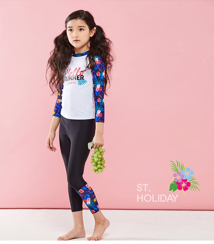 子ども水着 ラッシュガード男女兼用 ガールズラッシュガード 水着 セパレート キッズ 上下セット 長袖 ラッシュガード UVカット スイムウェア 女の子