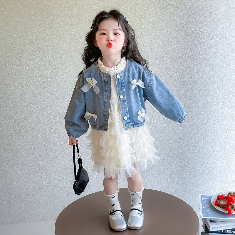 女の子用セット春物デニムジャケット2点セット春の女の子用プリンセスドレスおしゃれなセットアップドレス