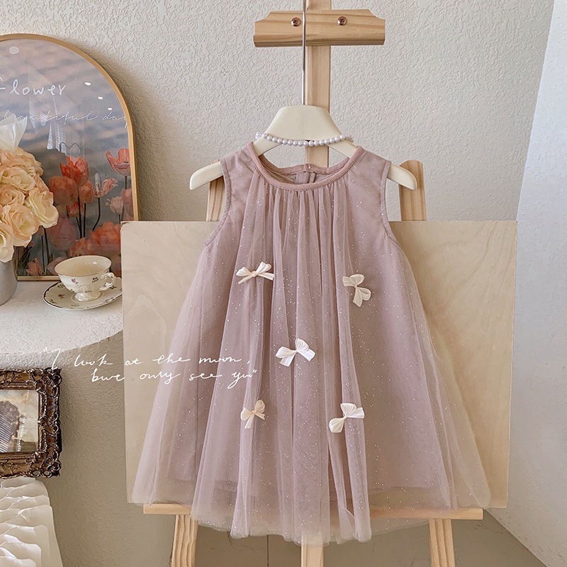 ノースリーブ立体リボンメッシュプリンセスドレス夏用女児用スイート