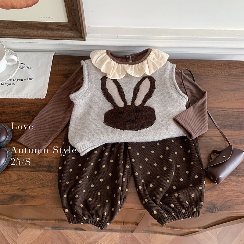 女の子用秋物おしゃれベビーニットセータートップス水玉柄パンツの3点セット