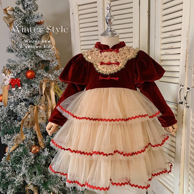 女の子用新年クリスマス赤いルスカートプリンセスドレスケーキスカートロリータドレス子供用ドレス