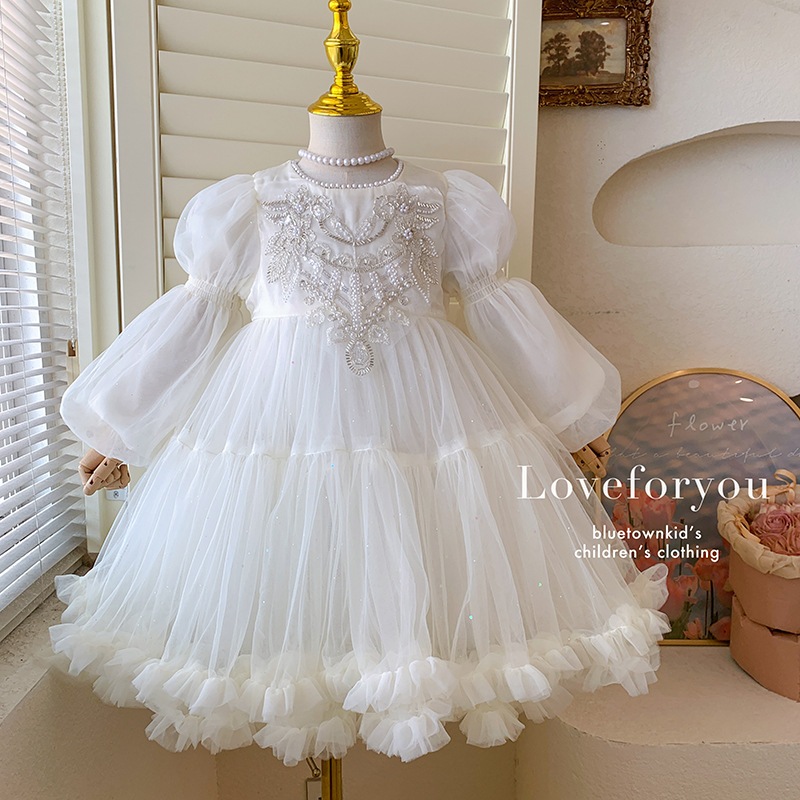 女の子用プリンセスドレス高級感のあるフラワーガールドレス小さな女の子の誕生日ドレスおしゃれな宮廷風パール