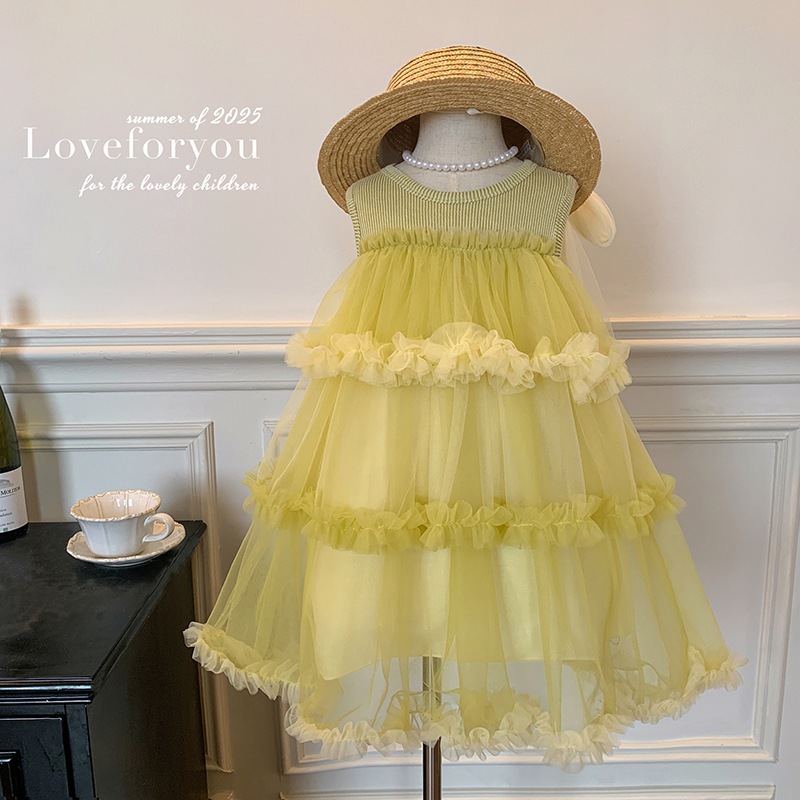 女の子用おしゃれプリンセスルスカートケーキスカートドレス夏のノースリーブメッシュ