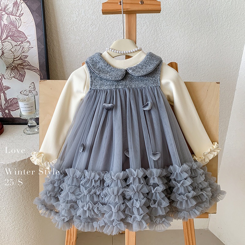 女の子用冬物セット裏起毛ノースリーブハート柄2点セット