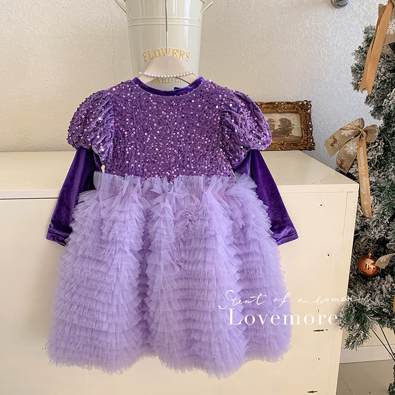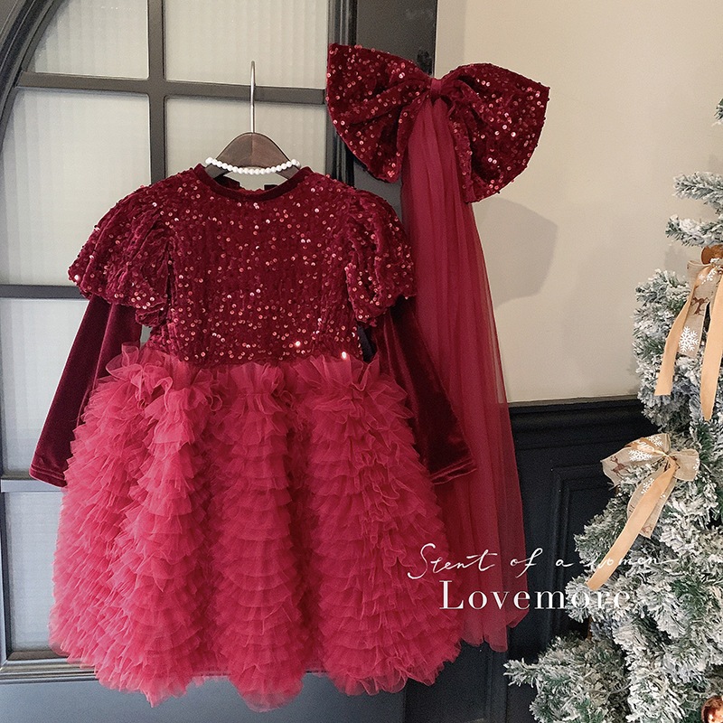 冬の女の子用裏起毛スパンコールスカート高級誕生日ドレス蝶結びフラワーガールドレスお祝いの新年やクリスマスに