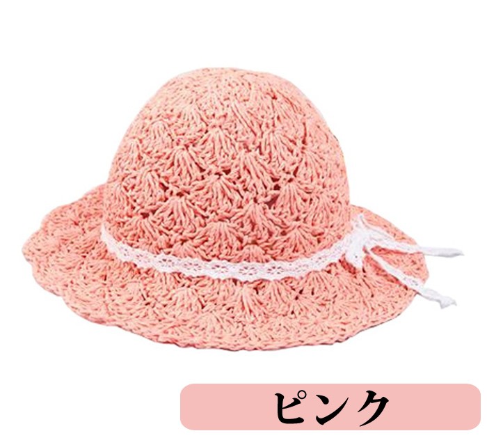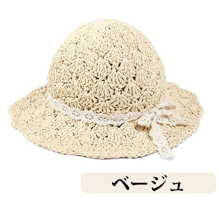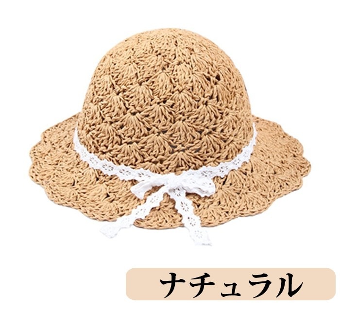 子供用ストローハット 麦わら帽子 ビーチハット キッズ 女の子 リゾート気分 かわいい 透かし 春夏 アウトドア くたっと柔らか ざっくり 帽子 天然