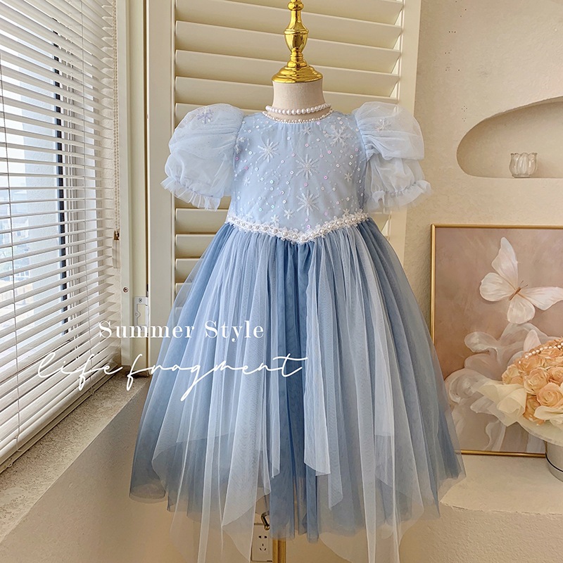 女の子用夏服女児用アナと雪の女王プリンセスドレス小さな女の子用メッシュプリンセスドレス