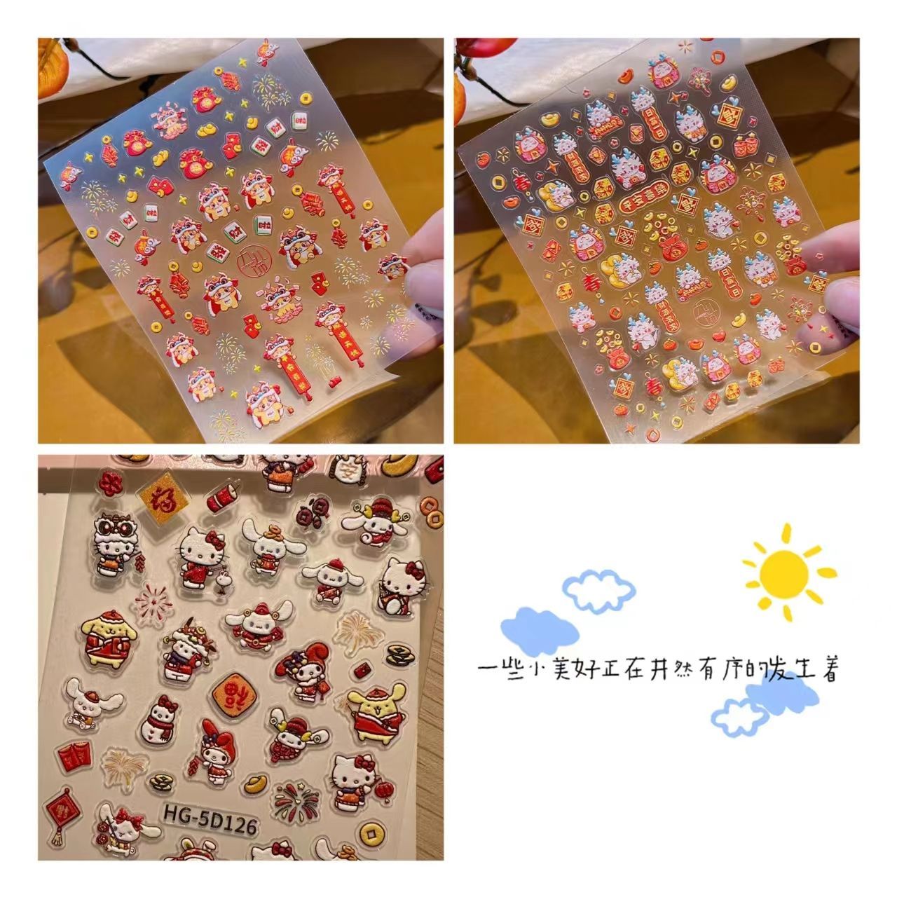 サンリオ大好評!同じ新年キティネイルシールハローキティ浮き彫り立体3d水杯シール携帯電話シール L323