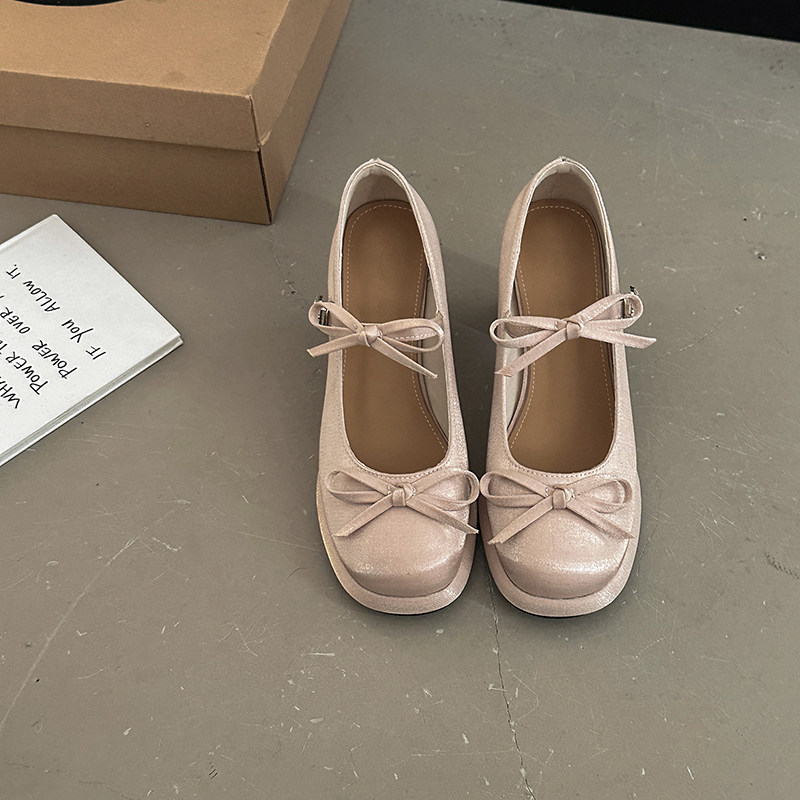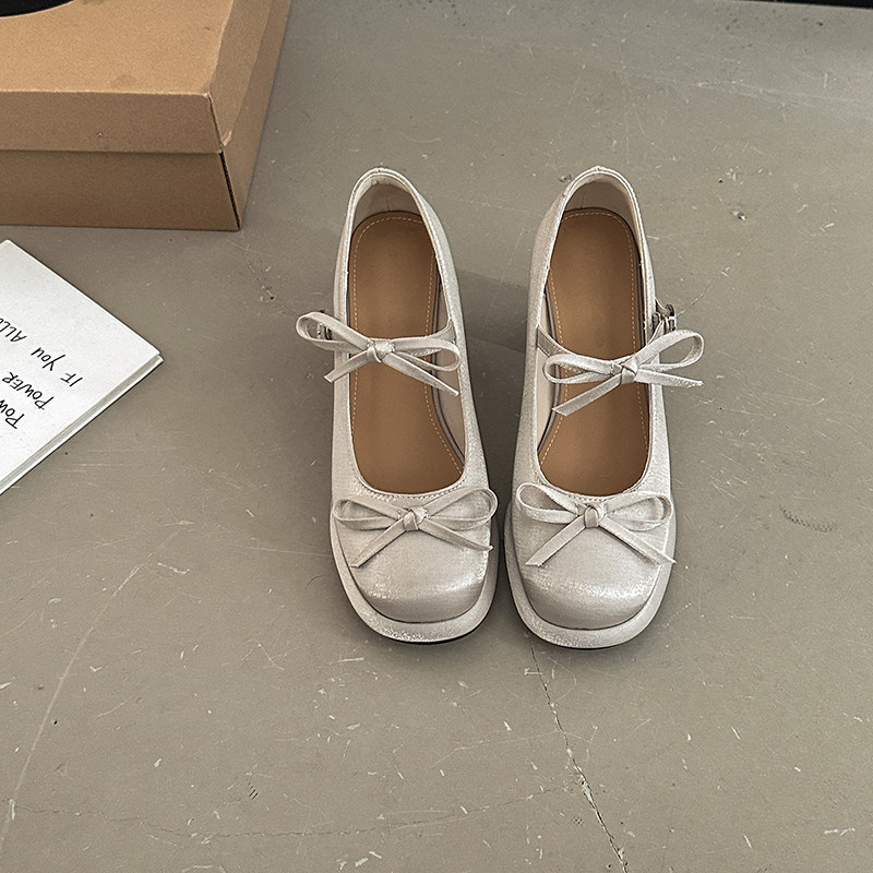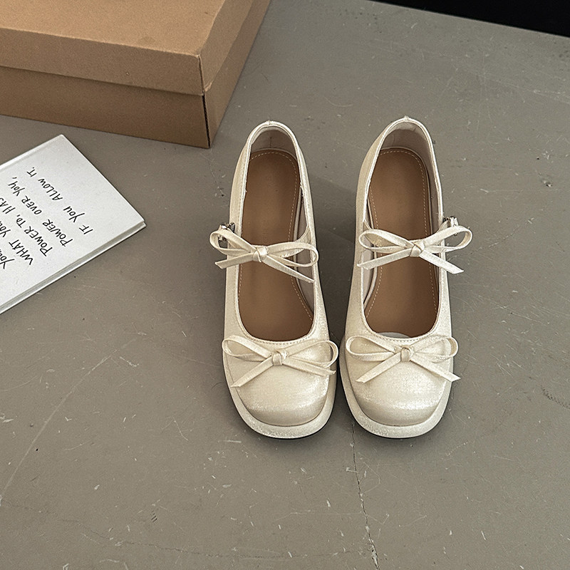 サテン 上品 華やか 甘々 レトロ フレンチ 太めヒール えり足 靴 女性 ストラップバックル 少女 カジュアルシューズ