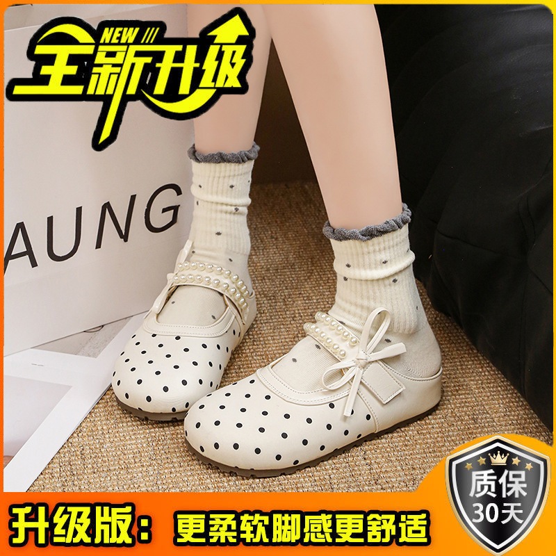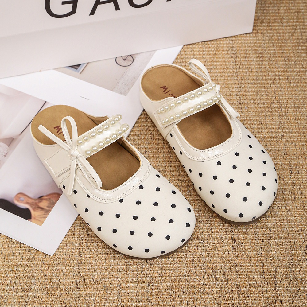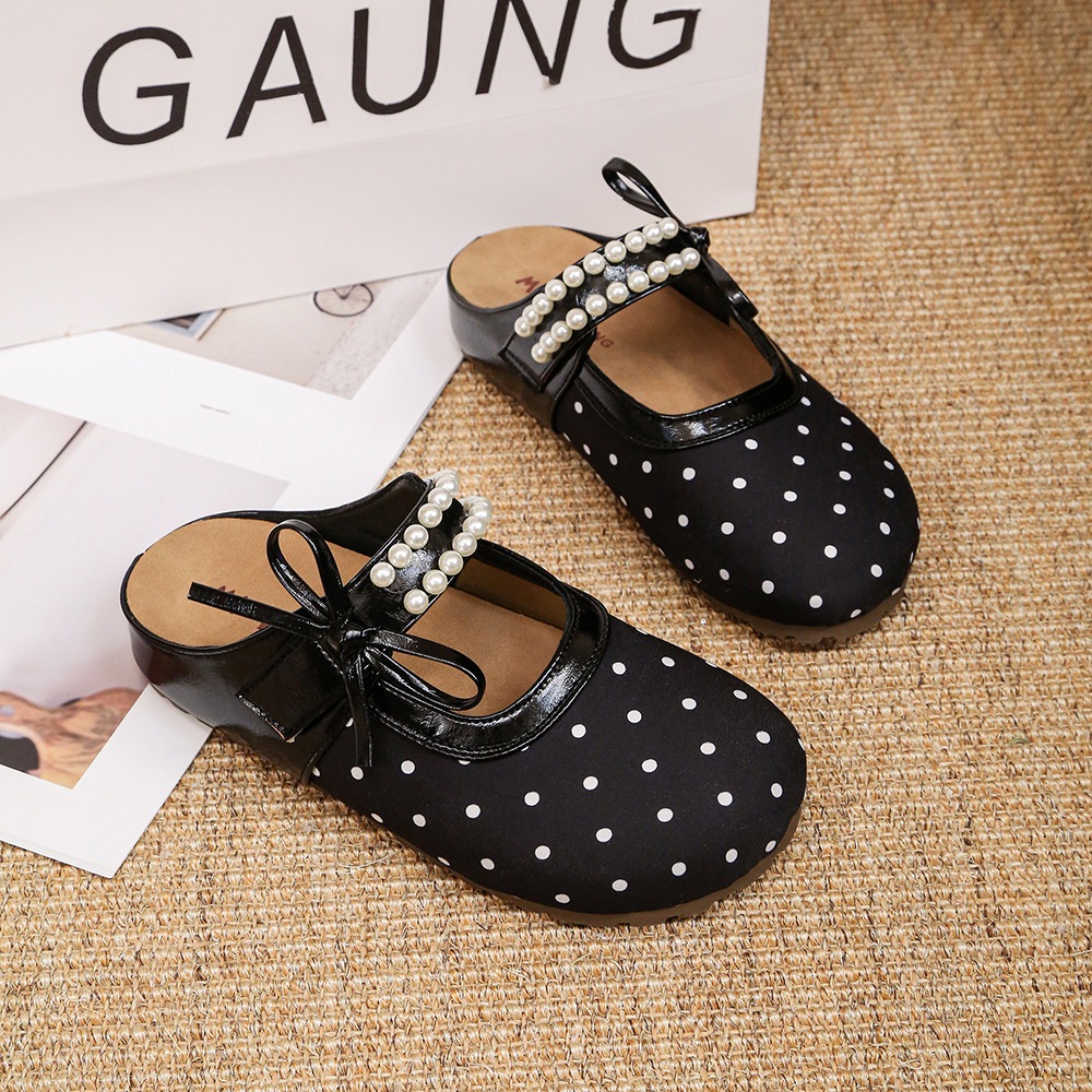 水玉 カジュアル ラウンドトゥ ストラップバックル フラット サンダル おしゃれ デザイン パール ビロード つま先カバー サンダル