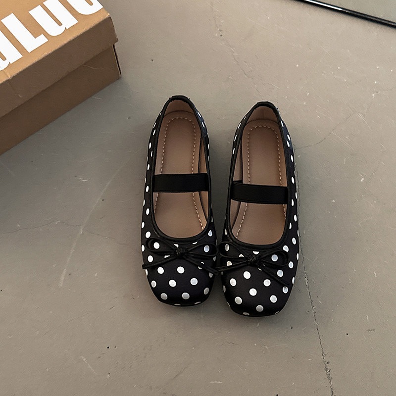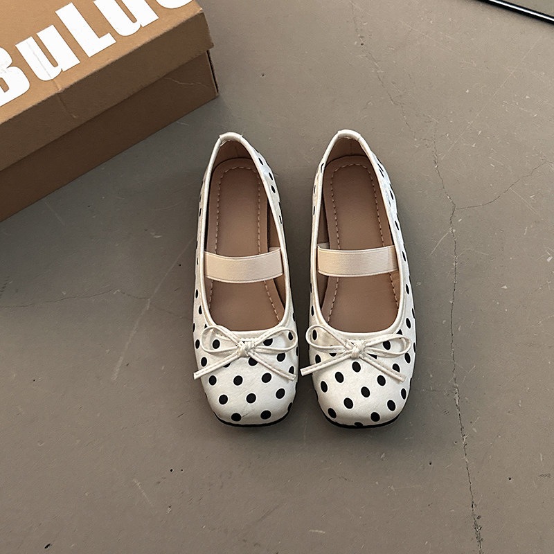 水玉 カジュアルシューズ 女性 上品 甘々 カジュアル ストラップバックル えり足 つま先カバー カジュアルシューズ バレエ風