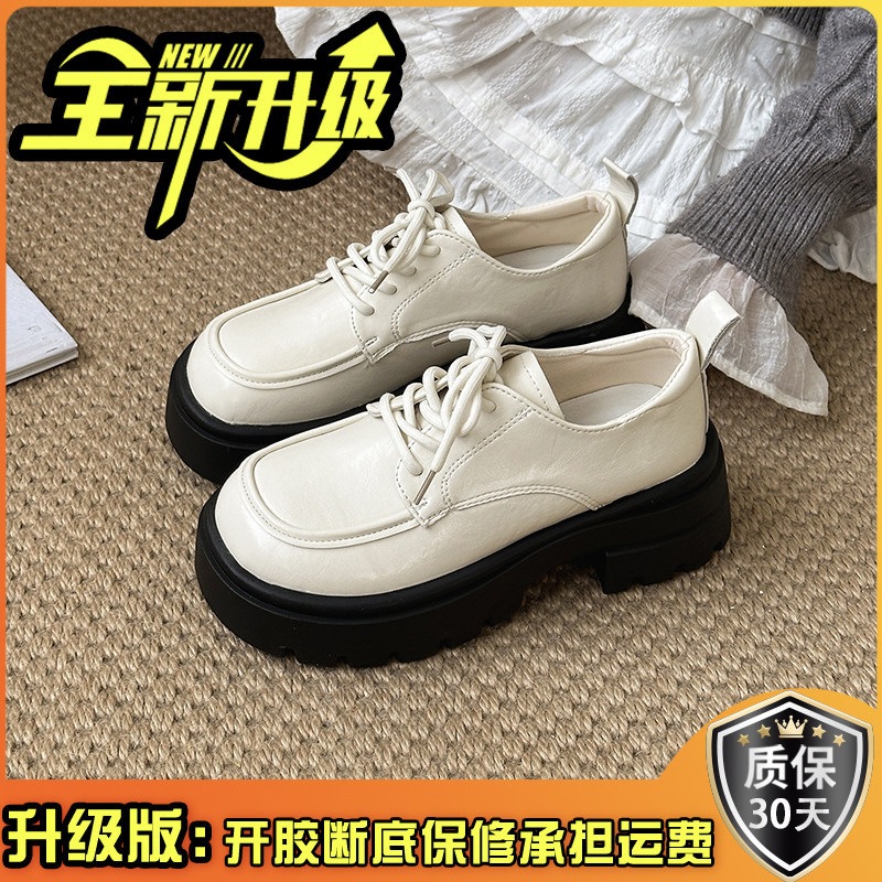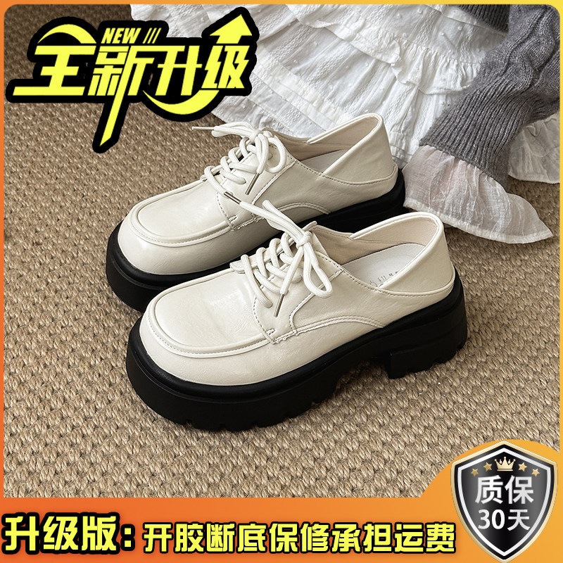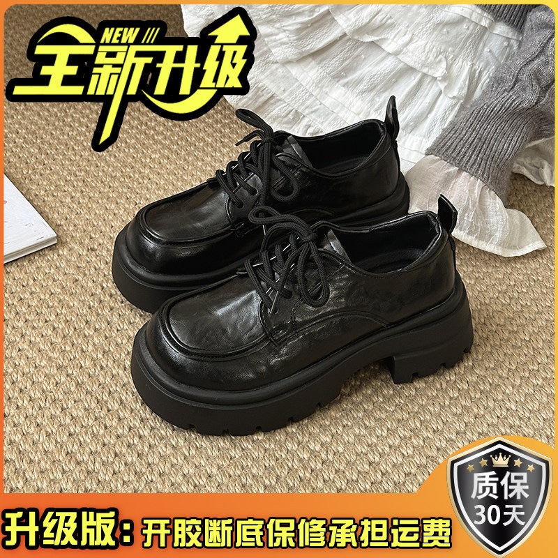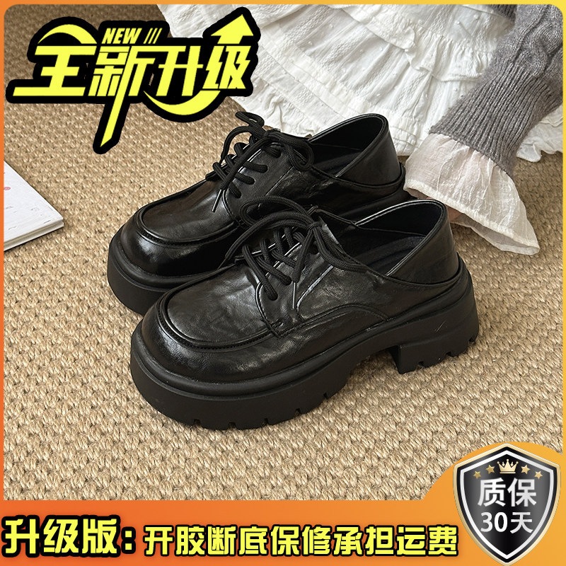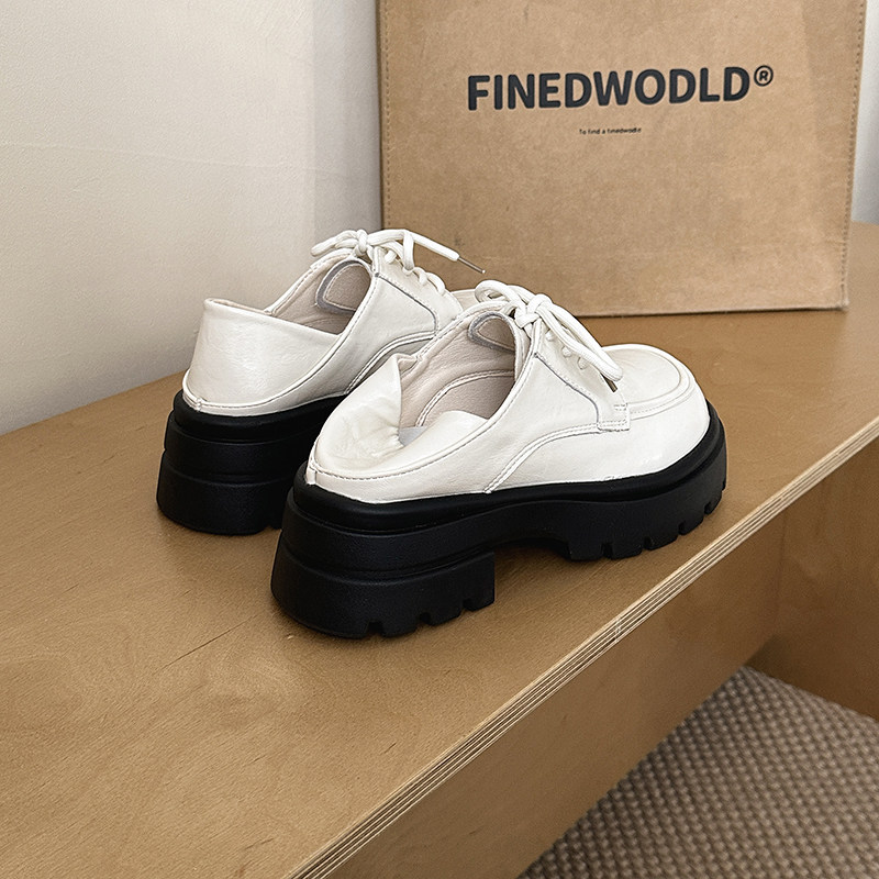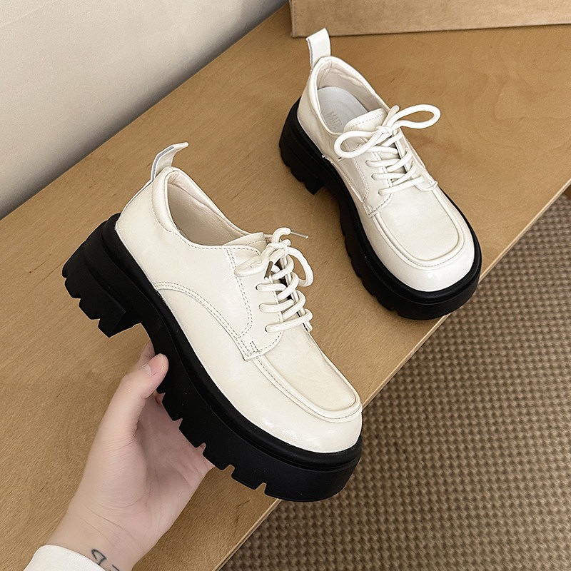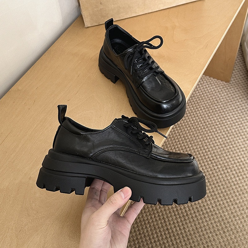 英倫風 厚底 カジュアルシューズ 女性 おしゃれ 万能 カジュアル 靴ひも レトロ レザーシューズ かかと高さアップ 万能 太めヒール