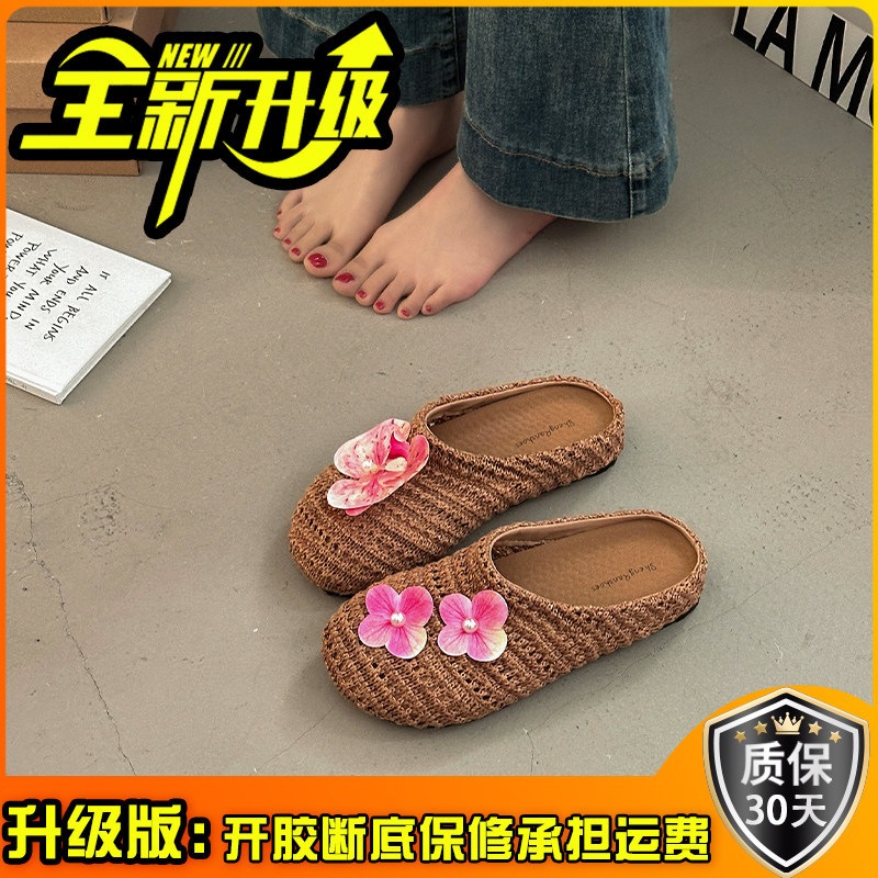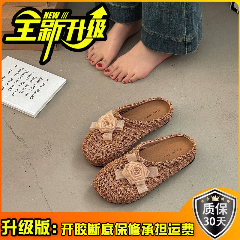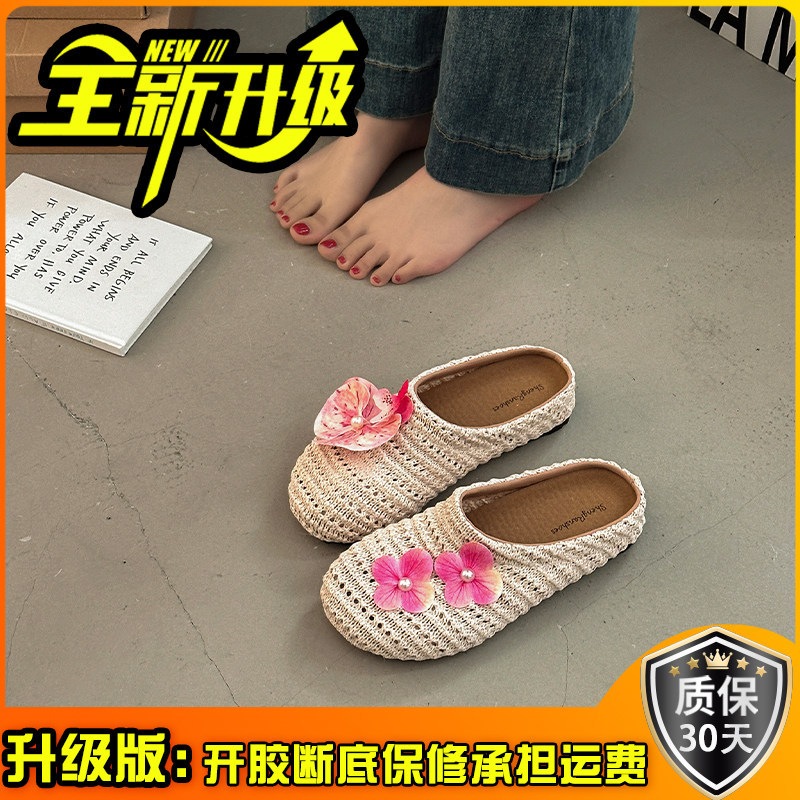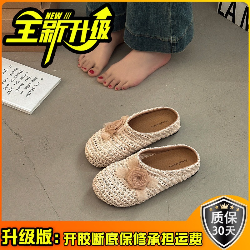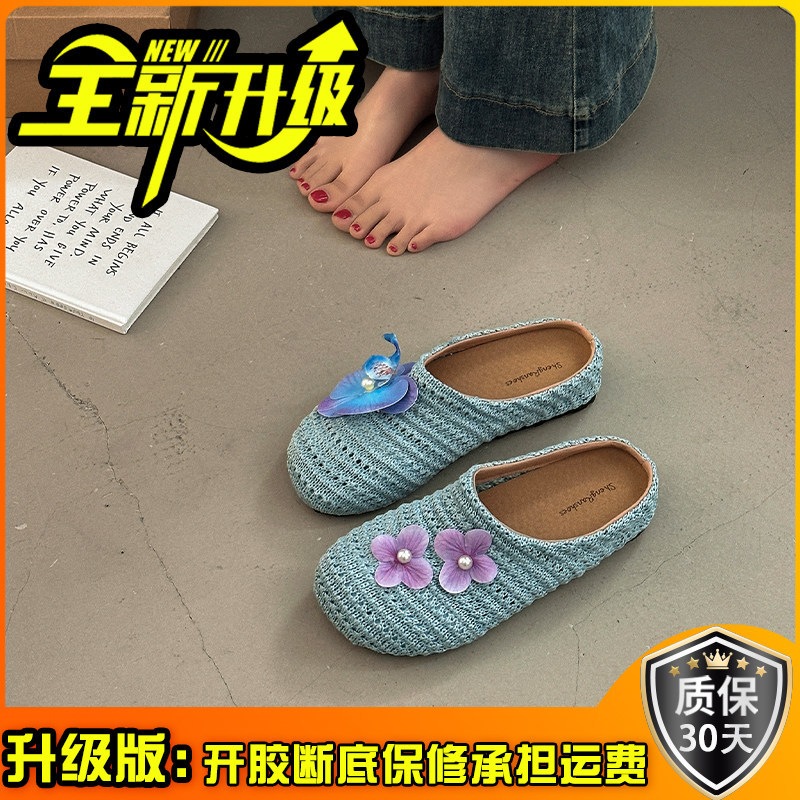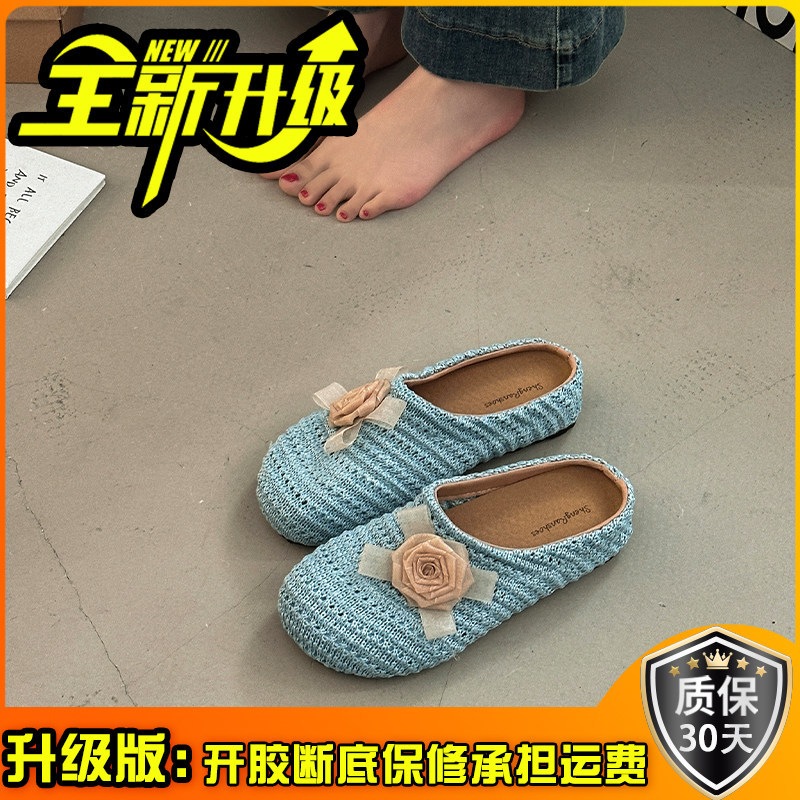 優しい 編み つま先カバー サンダル 女性 ビロード 上品 かわいい 屋外 花 飾り スリッポン 滑り止め ミュール