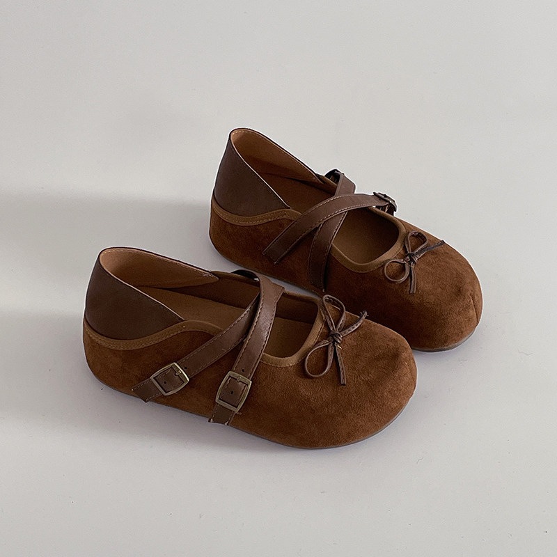リボン 靴 えり足 つま先カバー カジュアルシューズ 女性 おしゃれ レトロ シンプル クロスバックル カジュアル