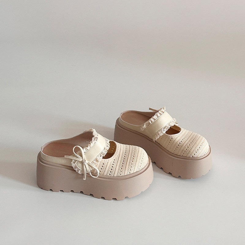 可愛い 透かし 通気性 厚底 つま先カバー サンダル 女性 滑り止め スリッポン 少女 厚底 オープントゥサンダル