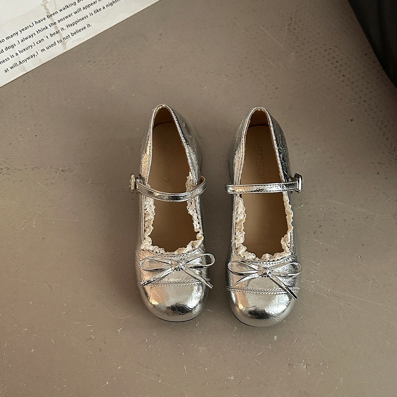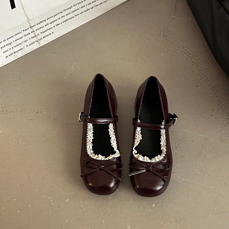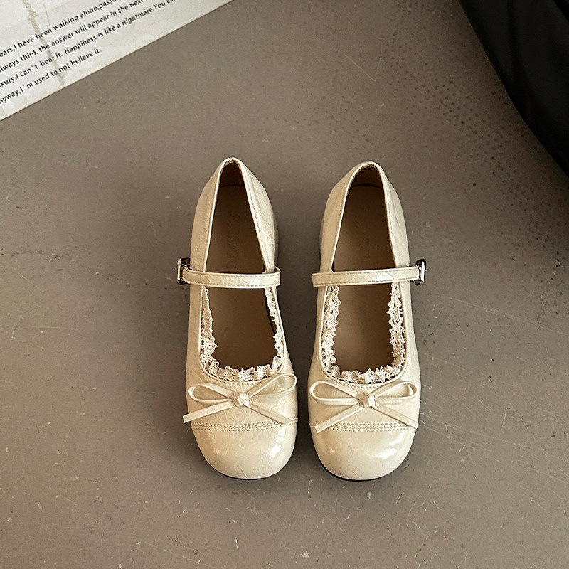 ラウンドトゥ レザー 甘々 レザーシューズ リボン 靴 女性 おしゃれ 万能 太めヒール えり足 カジュアルシューズ
