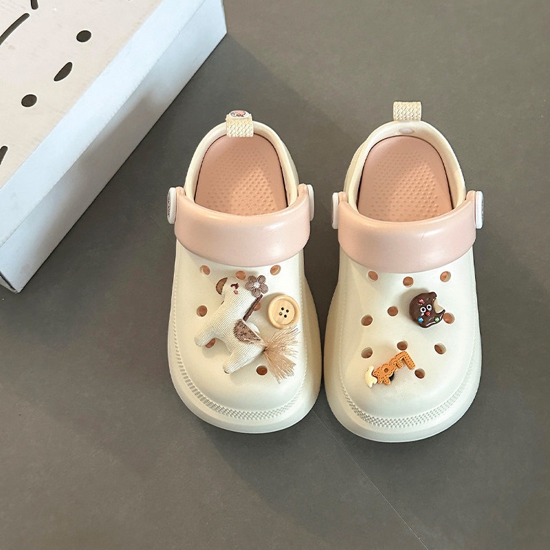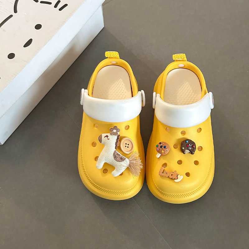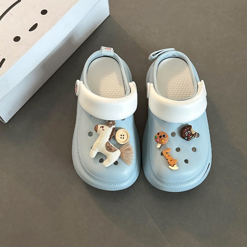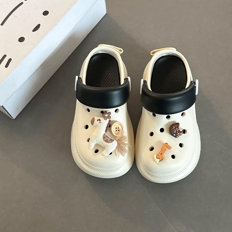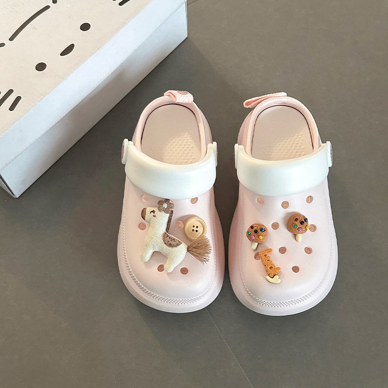 可愛い カートゥーン 飾り 厚底 つま先カバー サンダル 女性 おしゃれ 滑り止め 快適 屋外 クロッグ 少女 サンダル