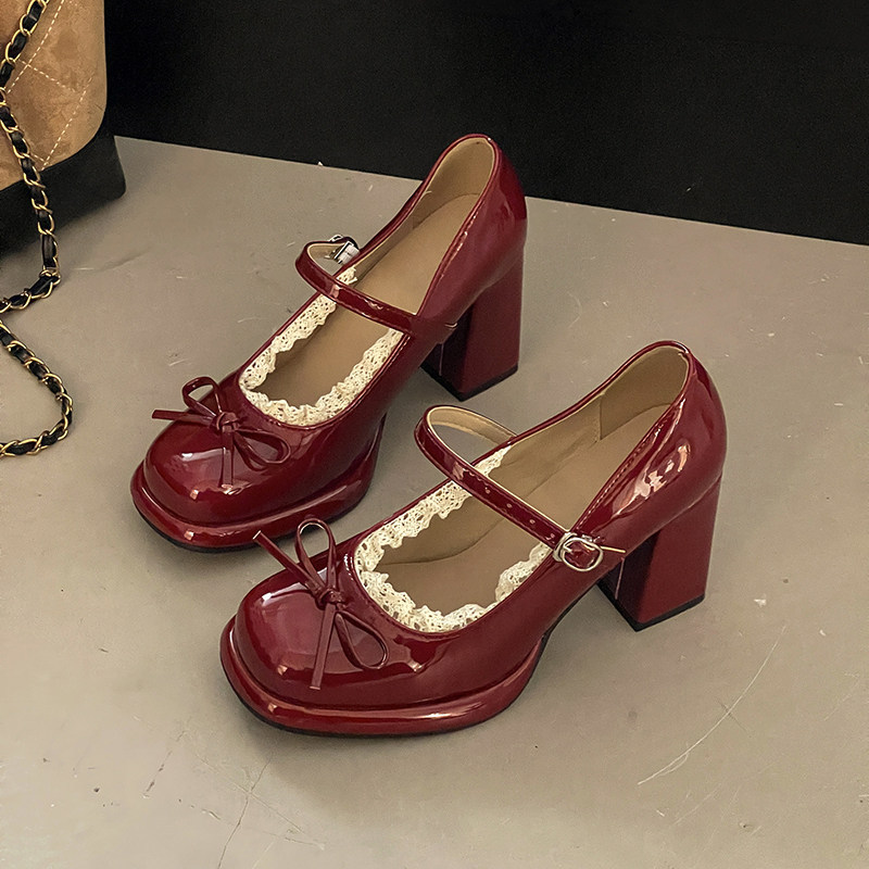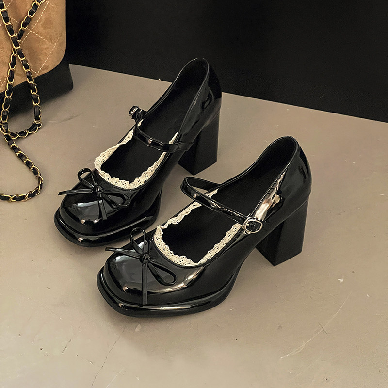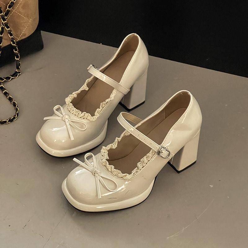 デザイン 靴 女性 甘々 上品 レース 太めヒール ストラップバックル 低身長 フレンチ レトロ つま先カバー カジュアルシューズ