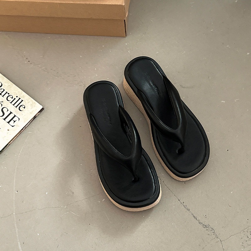 シンプル 快適 厚底 ラウンドトゥ フリップフロップ 女性 おしゃれ 無地 屋外 ウェッジソール 砂浜 カジュアル オープントゥサンダル
