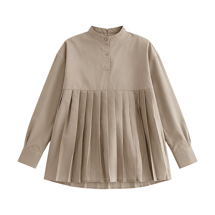 ブラウス レディース 長袖 きれいめ 春夏秋 プリーツ切り替え シャーリングトップス シャツブラウス 抜け感 トップス シャツ プリーツ 大人 チュニック リーネック 羽織オフィス カジュアル 着痩せ