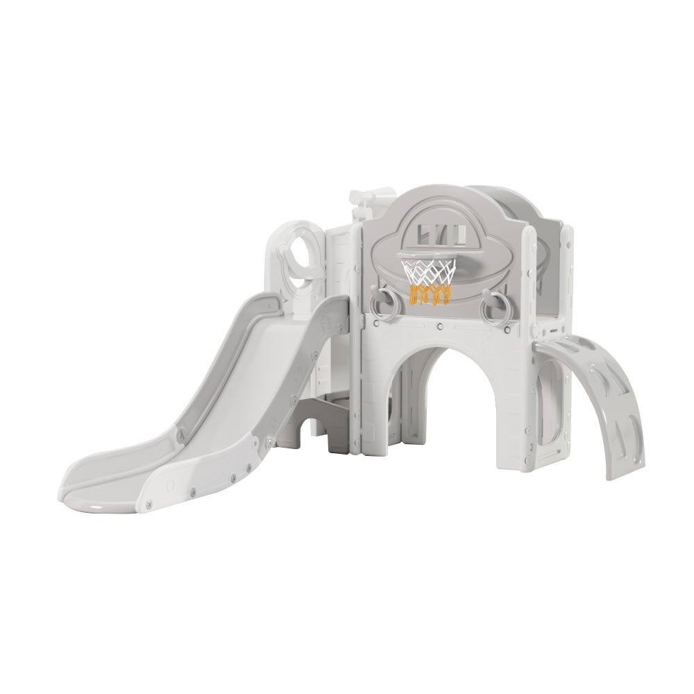 [国内即発送]134すべり台 キャッスル 大型遊具 すべりだい スライダー 室内 遊具 バスケットゴール 収納 グレー×ホワイト