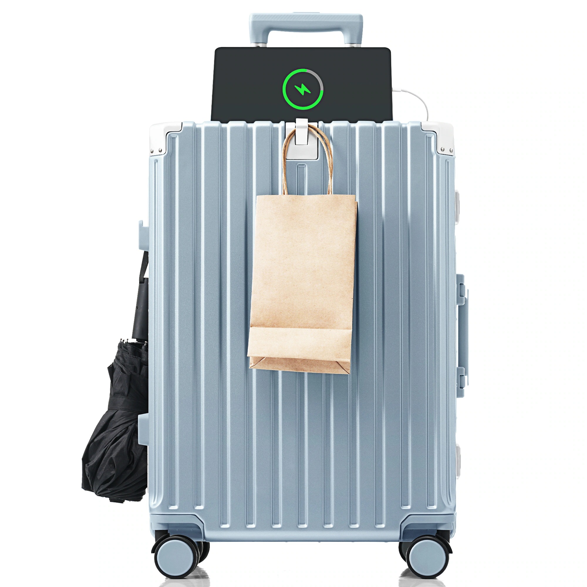 [国内即発送]335スーツケース キャリーケース キャリーバッグ Lサイズ フレームタイプ アルミ USBポート付き カップホルダー フック式底足 リンクホルダー 軽量 おしゃれ 電車 静音 海外 高
