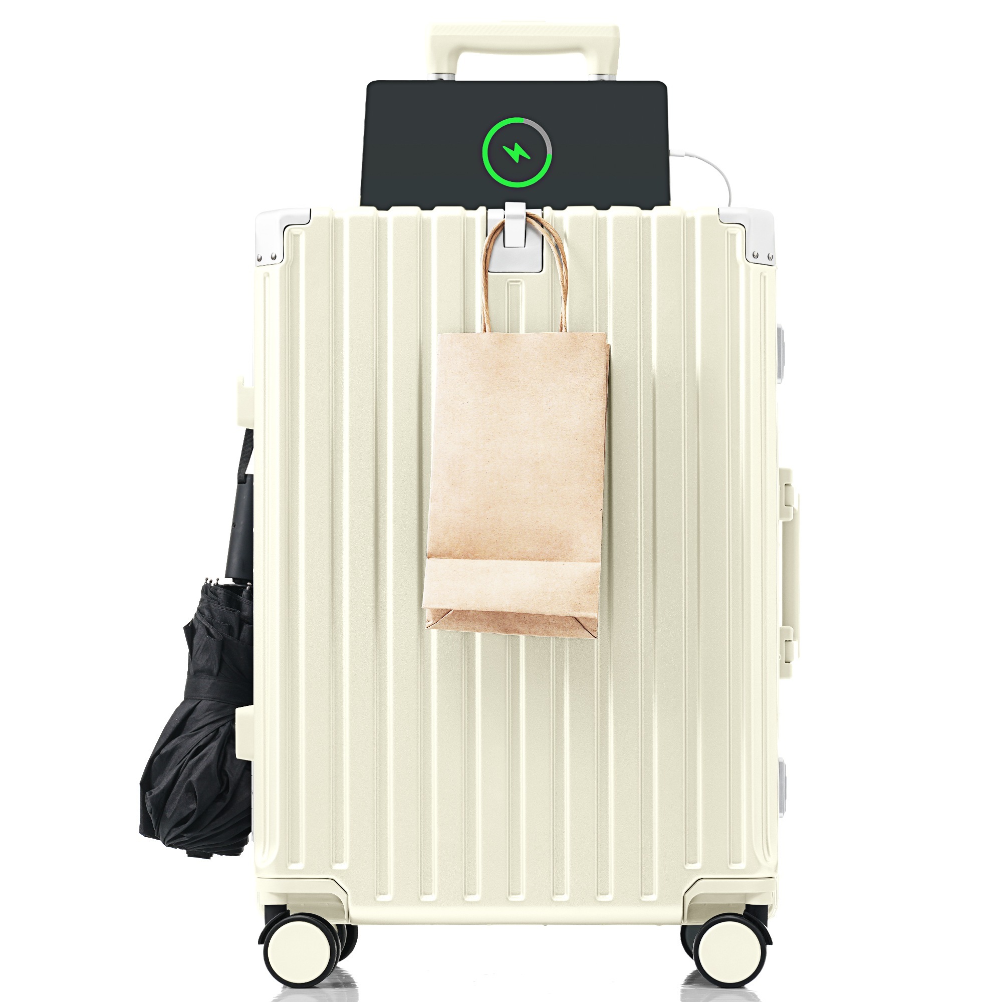 [国内即発送]352スーツケース キャリーケース キャリーバッグ Lサイズ フレームタイプ アルミ USBポート付き カップホルダー フック式底足 リンクホルダー 軽量 おしゃれ 電車 静音 海外 高