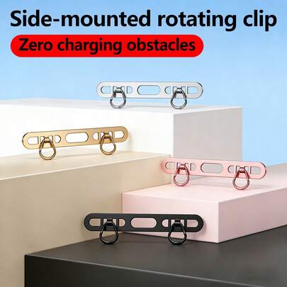 1/2個 ブラック/シルバー ステンレス鋼 サイドマウント式 スマホホルダー落下防止 頑丈コネクタースマートフォンキーチェーン携帯電話ストラップアクセサリーサイドマウント ダブルクリップパッド
