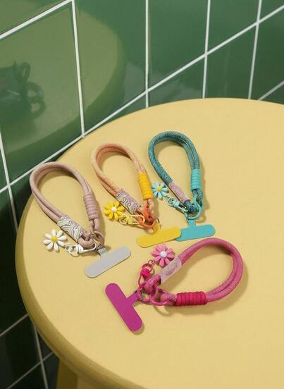 デイジー装飾ストラップ可愛いウーブン リストストラップユニセックス スマホ紛失防止ストリングクリップ付きの電話コード