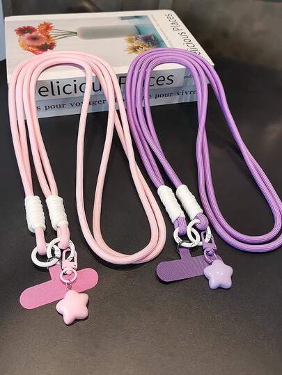 1個 星型 編み込み ランヤード ストラップ頑丈で耐久性のあるクロスボディフォンストラップアウトドアハイキング用男女兼用長いコードフォンホルダー