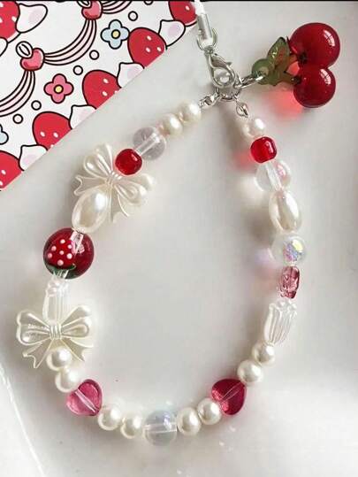 1個 かわいい サマー チェリー ショート モバイルペンダント ビーズ モバイルフォンチェーン カメラペンダント CCDペンダント バッグペンダント キーチェーン ギフト マザー家族友人誕生日休日 携