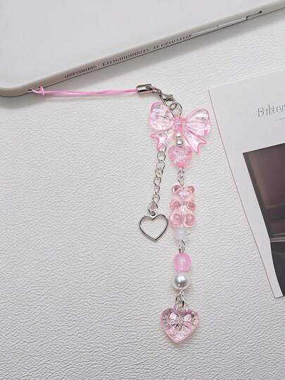 1個 ピンクのハートリボン 電話ストラップ かわいいキャラクター 装飾 携帯電話 ペンダントキーホルダー ガールズ用