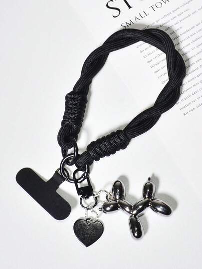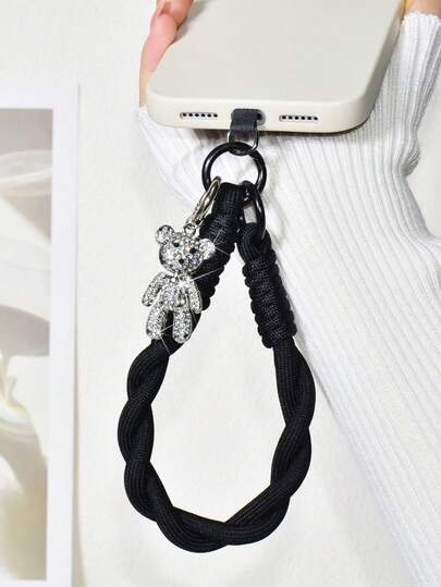ブラック マルチエレメント 1セット 無地ナイロンブレード スマホケースストラップ 取り外し可能リストランヤード かわいい クリスタルベア ペンダントチャーム キラキラバッグキーチェーンアクセサリー