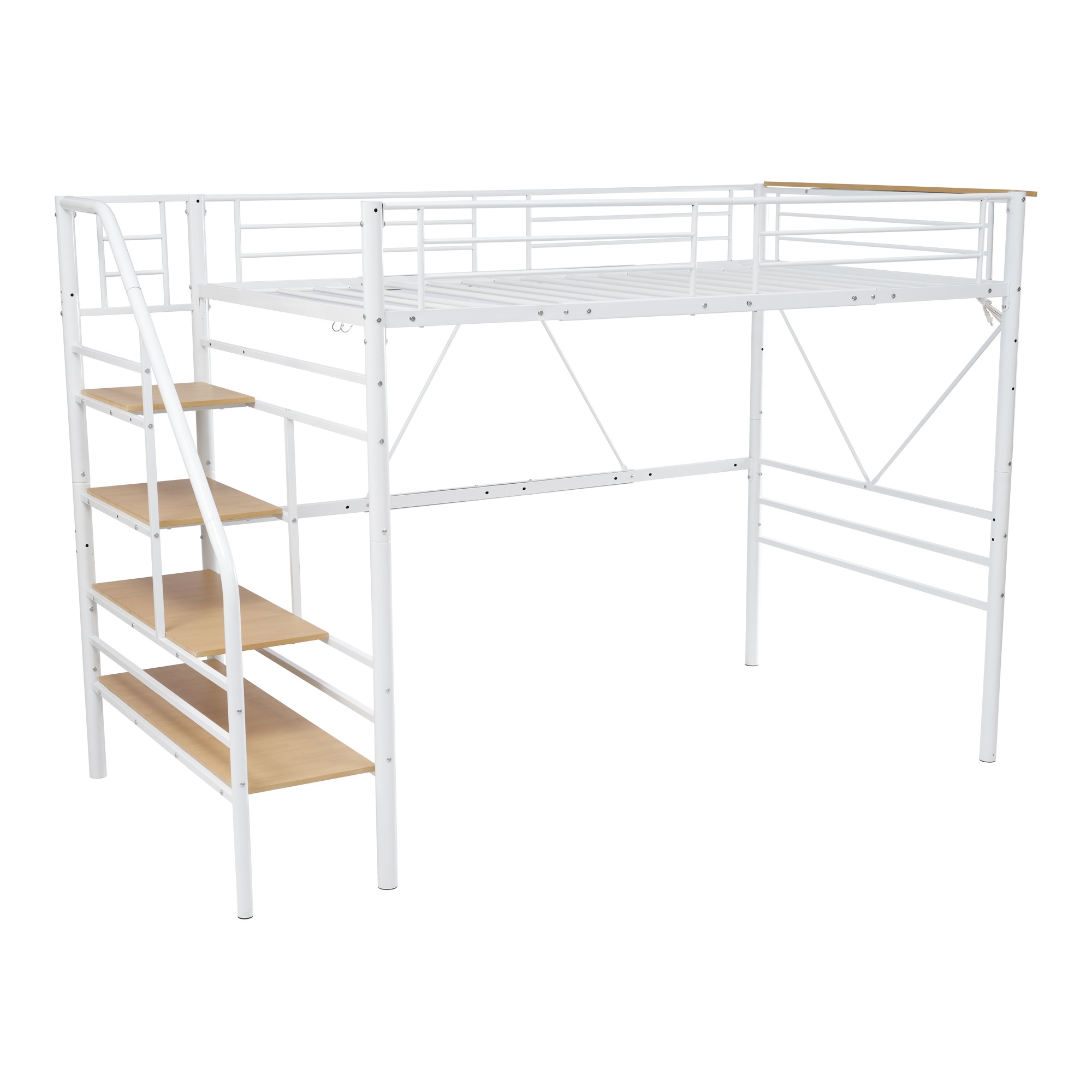 28国内入荷済!!S ロフトベッド 階段付き パイプベッド シングル コンセント付き 収納 スチール 耐震 ベッド シングル パイプベッド ベッドフレームのみ【Sシングル】
